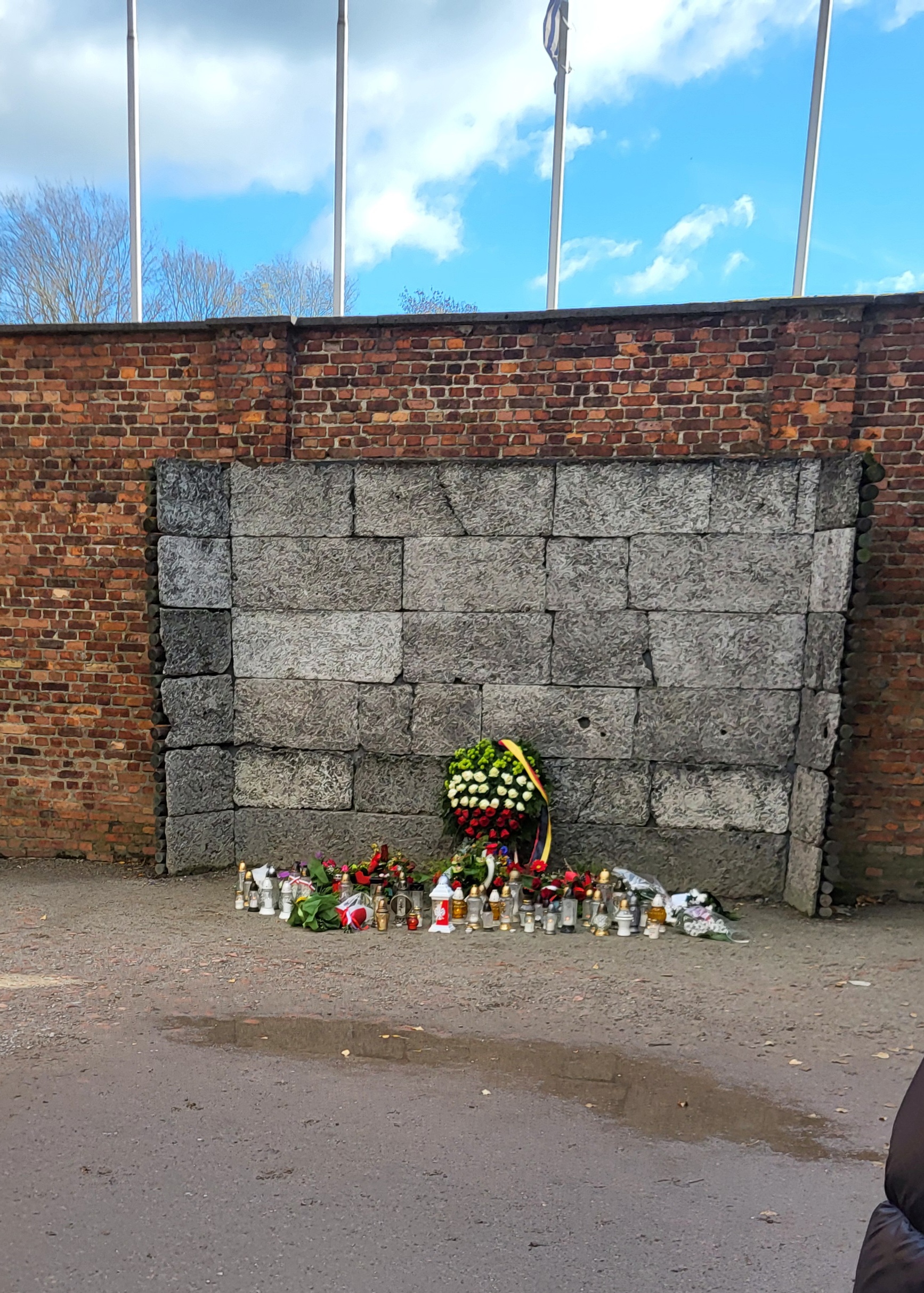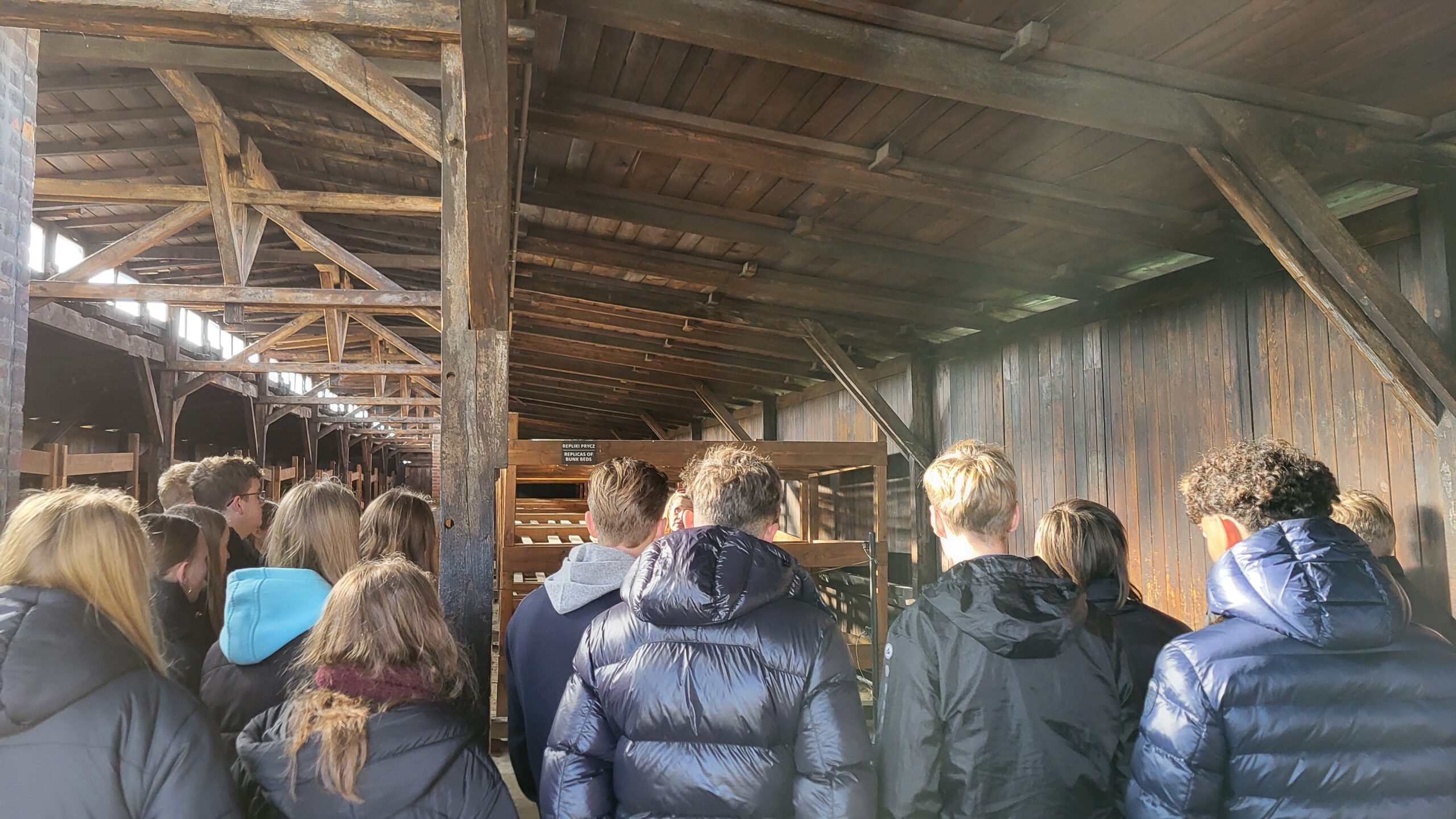 Am nächsten Tag brachte uns der Bus nach dem Frühstück zur Gedenkstätte Auschwitz-Birkenau, wo wir eine Studienführung durch das Stammlager Auschwitz I erhielten. Bereits das Betreten des Lagers durch das berühmte Tor mit der Aufschrift „Arbeit macht frei“ ließ uns die Beklemmung der Gefangenen erahnen, als wir an den Schildern mit Totenköpfen, die vor dem berühren des elektrischen Zaunes warnten, vorbeikamen und dabei erfuhren, dass viele Häftlinge in ihm in ihrer Verzweiflung Selbstmord begangen hatten Trotz der vielen Gruppen, die in unterschiedlichen Sprachen durch das Stammlager geschleust wurden, waren die Eindrücke oft überwältigend und brachten uns die verfolgten Menschen dieser Zeit und ihre Schicksale näher. Besonders beeindruckend waren hierbei die Bild- und Toninstallationen, aber auch das fast körperliche Erleben der Straf-Arrestzellen im Keller einer der Blöcke. Besonders erschütternd waren aber die Berge von Habseligkeiten, die den Juden vor ihrer Ermordung abgenommen wurden: Berge von Koffern, Schuhen, Brillen, Kleidung und sogar Haaren, die für die deutsche Wirtschaft nutzbar gemacht werden sollten und die die menschenverachtende Philosophie der Nationalsozialisten spürbar machte.