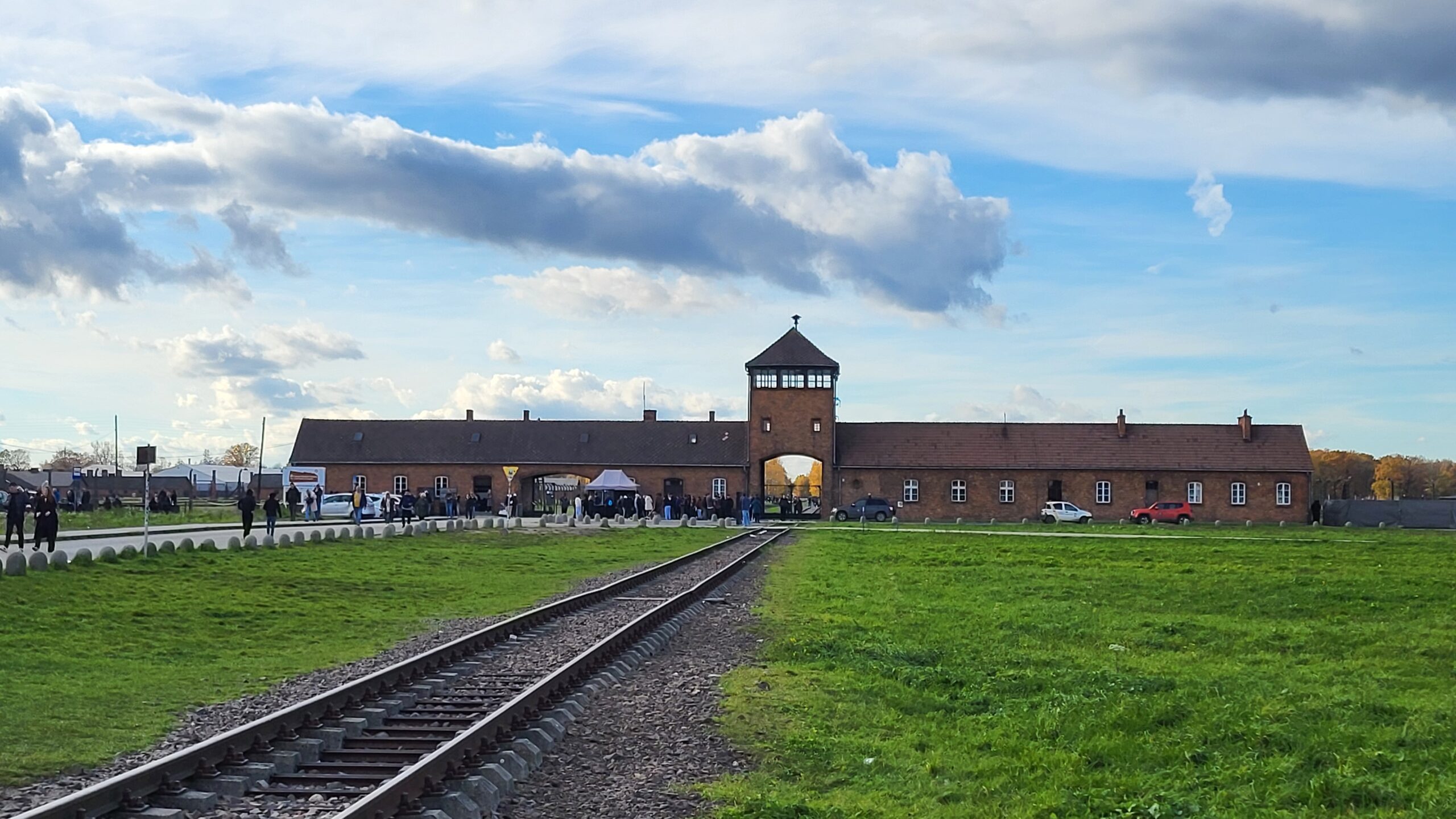 Nach einem kurzen Mittag ging es weiter zum Lager Auschwitz II-Birkenau, wo uns der zweite Teil der Studienführung erwartete. Wir betraten das Lager durch das zum Sinnbild für den nationalsozialistischen Vernichtungsapparat gewordene Backsteinhaus und wurden von den Dimensionen des Vernichtungslagers fast erschlagen. Wir sahen die Rampe mit einem der Güterwagons, an der nach der Ankunft der Züge aus ganz Europa die wie Vieh in den Wagons eingepferchten Juden die Selektion „Arbeitseinsatz“ – „sofortige Vernichtung“ durchgeführt wurde. Die primitiven Holzbaracken, in denen hunderte von Häftlingen unter schrecklichsten Bedingungen hausen mussten, und die Ruinen der von den Nazis noch selbst kurz vor der Befreiung des Lagers zerstörten Gaskammern und Krematorien sowie ein Glaskasten auf freiem Feld, der uns den mit Fundstücken aus dem Leben der Insassen durchsetzten Boden präsentierte, führte uns das Leid der Inhaftierten, aber auch den perfiden Perfektionismus der nationalsozialistischen Tötungsmaschine vor Augen.