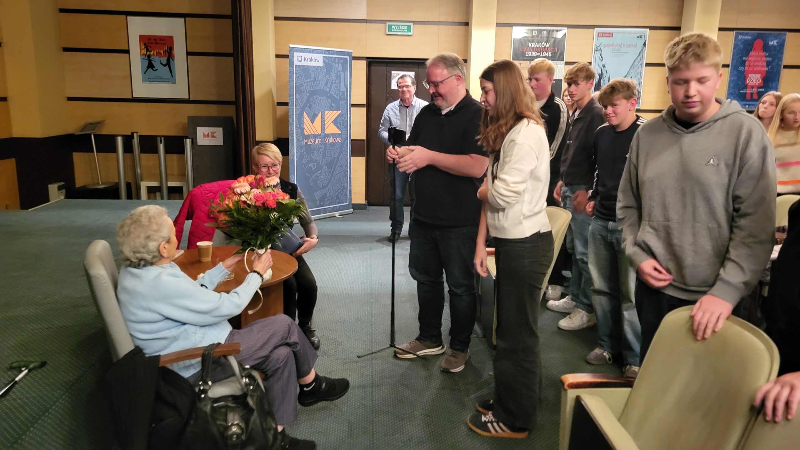 An unserem letzten Tag in Krakau fuhren wir mit der Straßenbahn zum Schindlermuseum, in dem wir eine sehr interessante Führung zu der Zeit der Besetzung Krakaus durch die Nationalsozialisten sowie Oskar Schindler und seiner Fabrik und „Schindlers Liste“ hatten. Nach einem kurzen Mittagsimbiss führte uns eine sehr kompetente Dame am Nachmittag auf den jüdischen Spuren durch Krakau in das ehemalige Ghetto Podgórze. Am Abend kehrten wir zurück ins Schindlermuseum, wo wir mit der Zeitzeugin Niusia Horowitz zusammentrafen, die uns aus ihren Erinnerungen aus der Zeit des Nationalsozialismus und ihrer Zeit in Oskar Schindlers Fabrik erzählte. Sie war das Mädchen, dem Oskar Schindler einen Kuss auf die Wange gab, als seine Fabrikarbeiter ihm vor den Augen der anwesenden Nazi-Größen zum Geburtstag gratulierten. Sie war voller Wärme und Hochachtung, als sie von diesem Mann sprach, der so vielen Juden das Leben gerettet hat. Zum Abschluss dieses jüdisch geprägten Tages durften wir im jüdischen Viertel in einem sehr ansprechenden Lokal typisch jüdische Gerichte probieren, von denen uns insbesondere die Vorspeisen sehr gemundet haben.