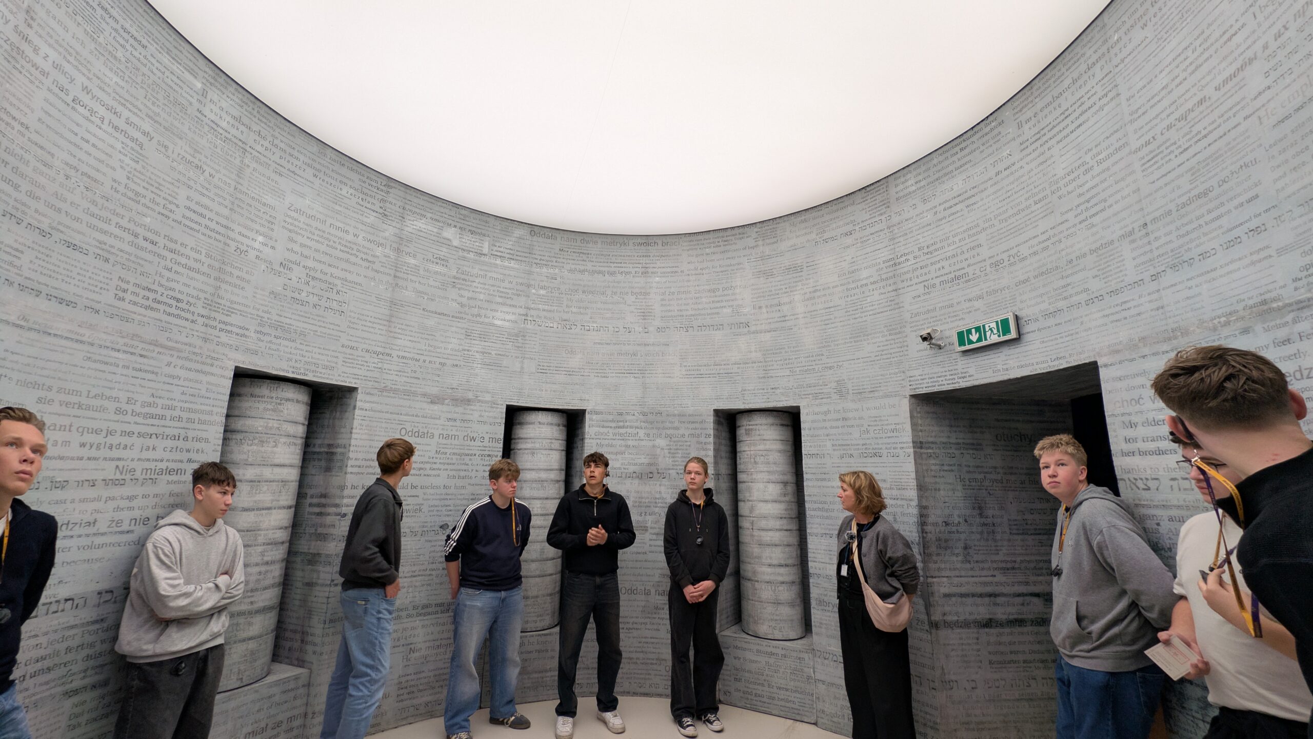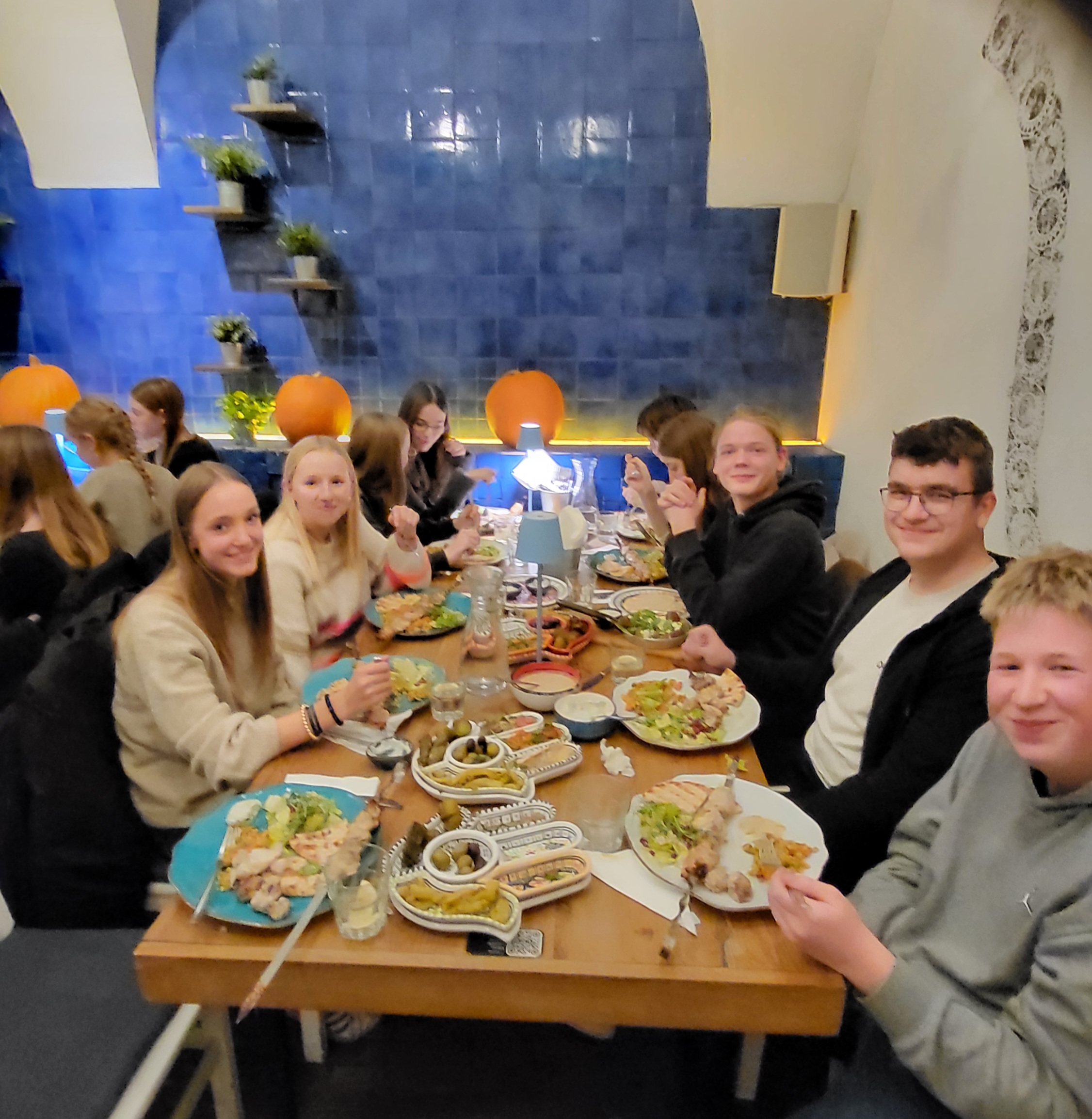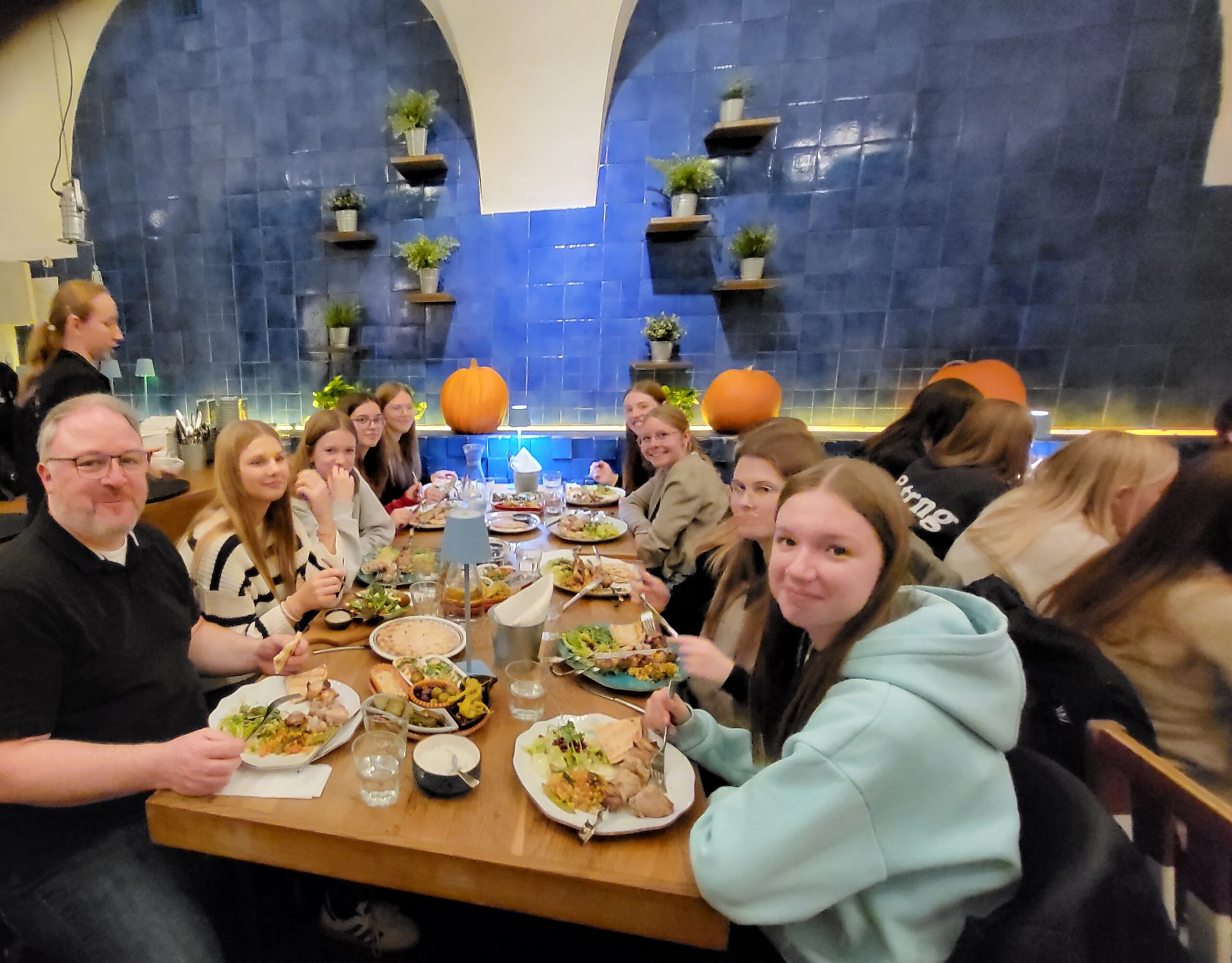 Zwischen den Überresten der Krematorien wurde den Opfern von Ausschwitz ein Denkmal und den nachfolgenden Generationen ein Mahnmal in Form von mehrsprachigen Gedenktafeln errichtet: „Dieser Ort sei allezeit ein Aufschrei der Verzweiflung und Mahnung an die Menschheit. Hier ermordeten die Nazis etwa anderthalb Millionen Männer, Frauen und Kinder. Die meisten waren Juden aus verschiedenen Ländern Europas.“ Während wir uns gegen Abend auf den Rückweg zum Tor machten, kamen uns von dort Gruppen von Juden eingehüllt in die israelische Flagge entgegen und unvermittelt fragte man sich, wie sie dies alles wohl empfinden mochten. Zurück in Krakau stärkten wir uns in einem vegetarischen Restaurant mit verschiedenen leckeren Gerichten, bevor wir uns alle zusammenfanden, um nach den beiden letzten seelisch anspruchsvollen Tagen eventuellen Gesprächsbedarf zu bedienen und im Anschluss ein Brainstorming zu potentiellen Fragen an die Zeitzeugin, die wir am nächsten Tag treffen würden, zu machen.