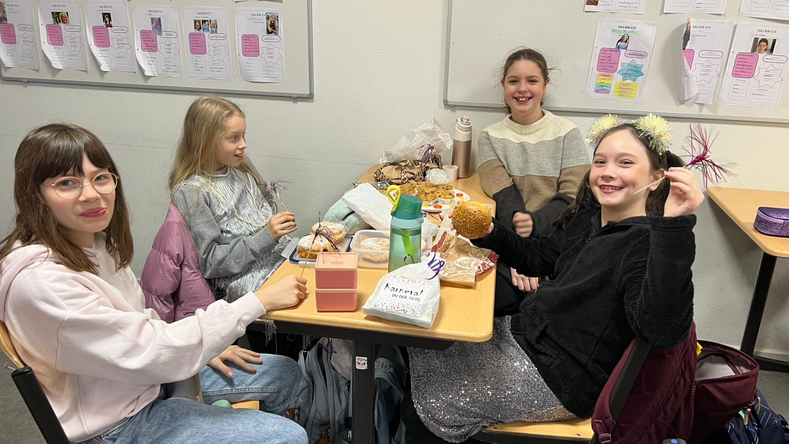 Einige Schülerinnen kamen verkleidet als ihre Lieblingsfiguren – von Hermine über Ninja-Kämpferin bis zur Indianerin war alles dabei. In Gruppentischen frühstückten die Mädchen dann gemeinsam und freuten sich an den leckeren Sachen, die ihre Eltern ihnen für den besonderen Anlass mitgegeben hatten. In Zukunft sollen für die 5. Klassen ein bisschen Karneval feiern jedes Jahr möglich sein, um ihnen den Übergang vom „feierwütigen Karnevalsdonnerstag“ in der Grundschule zur nicht Karneval feiernden weiterführenden Schule zu erleichtern.