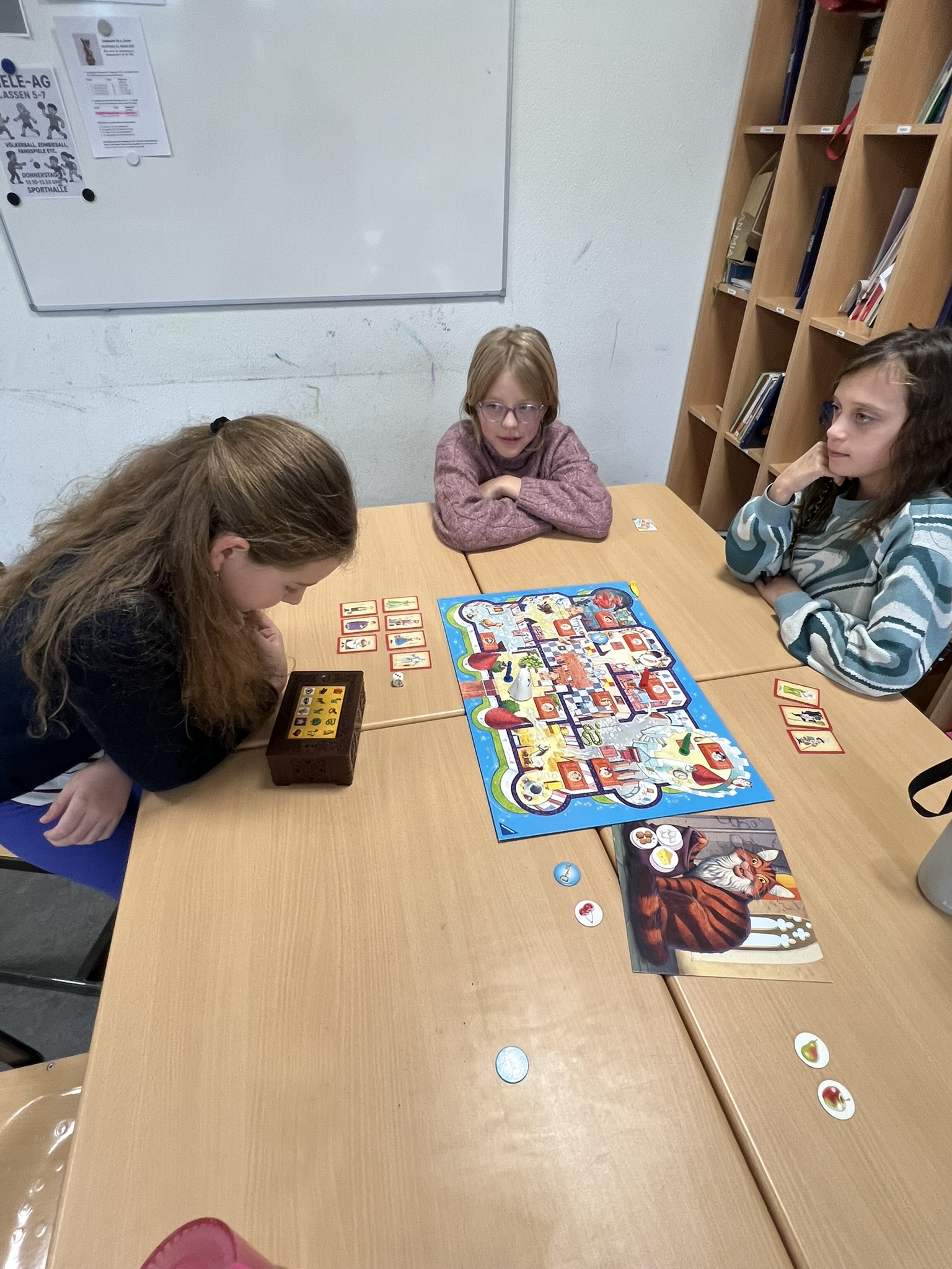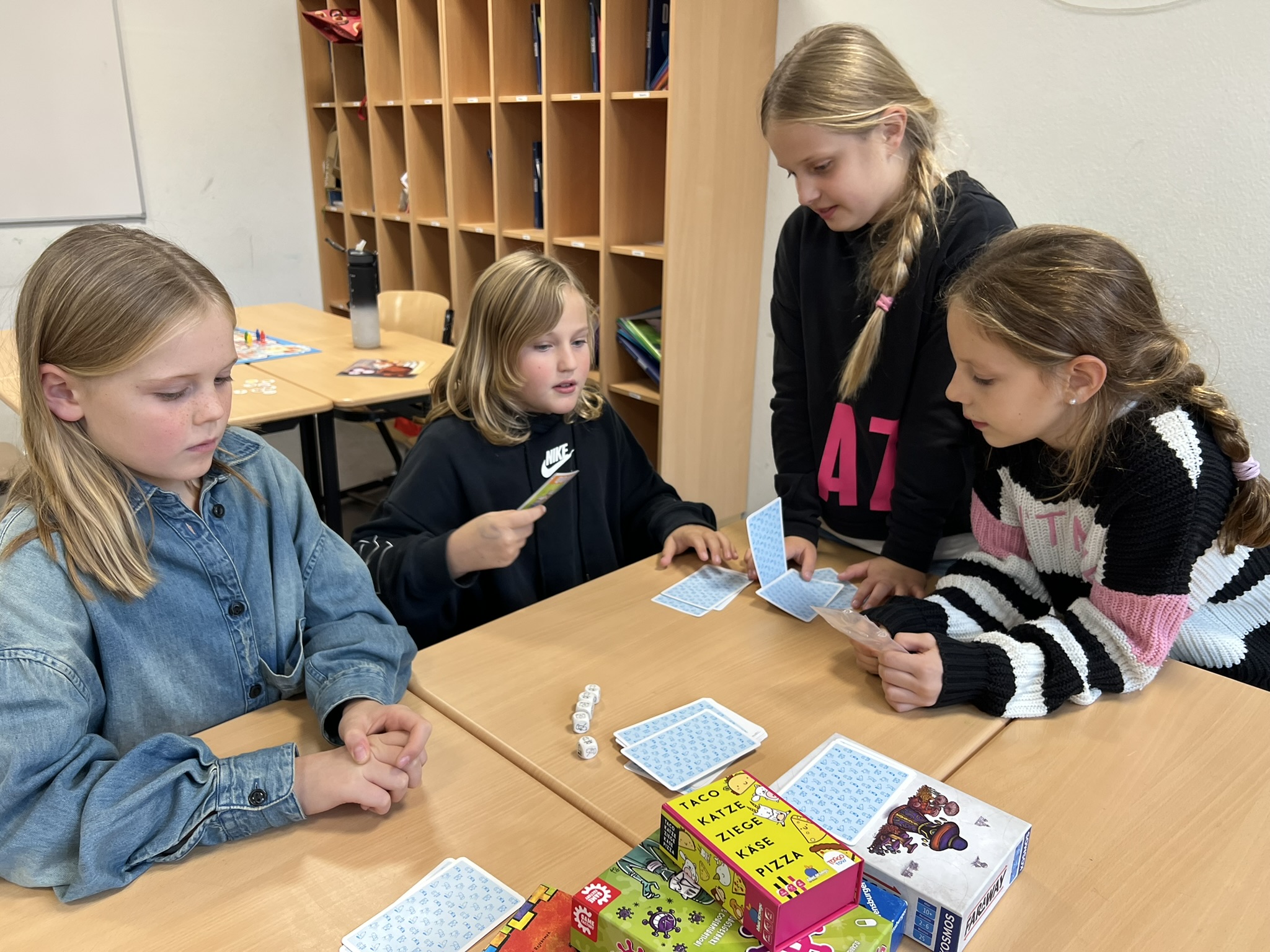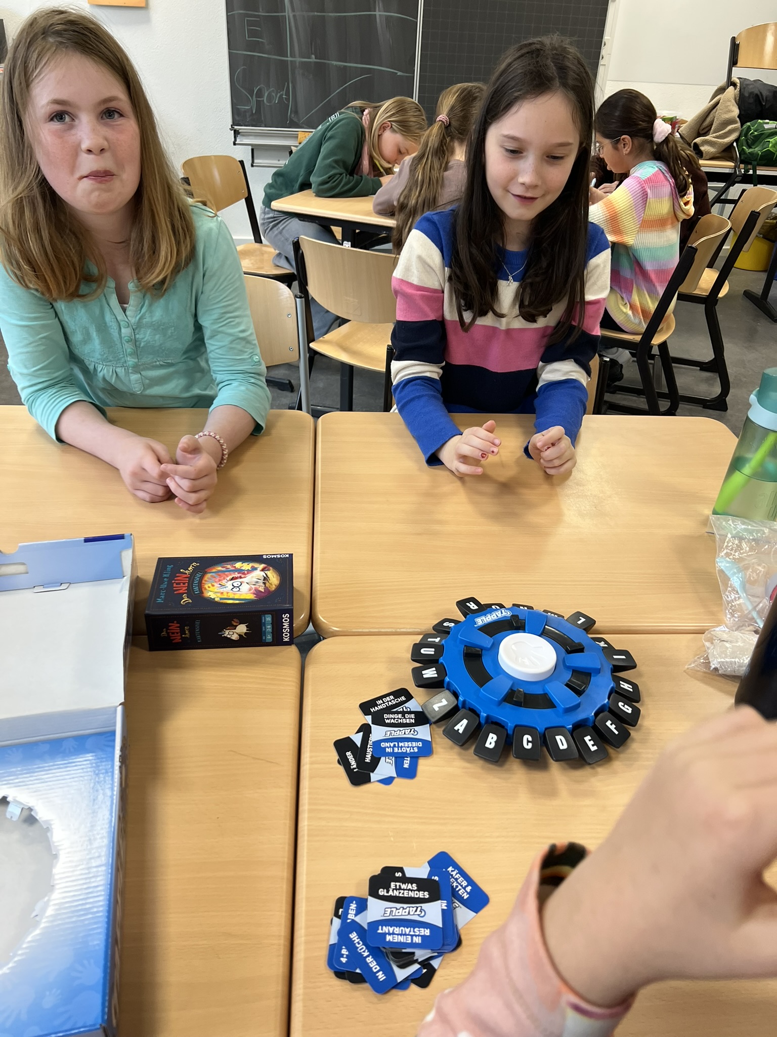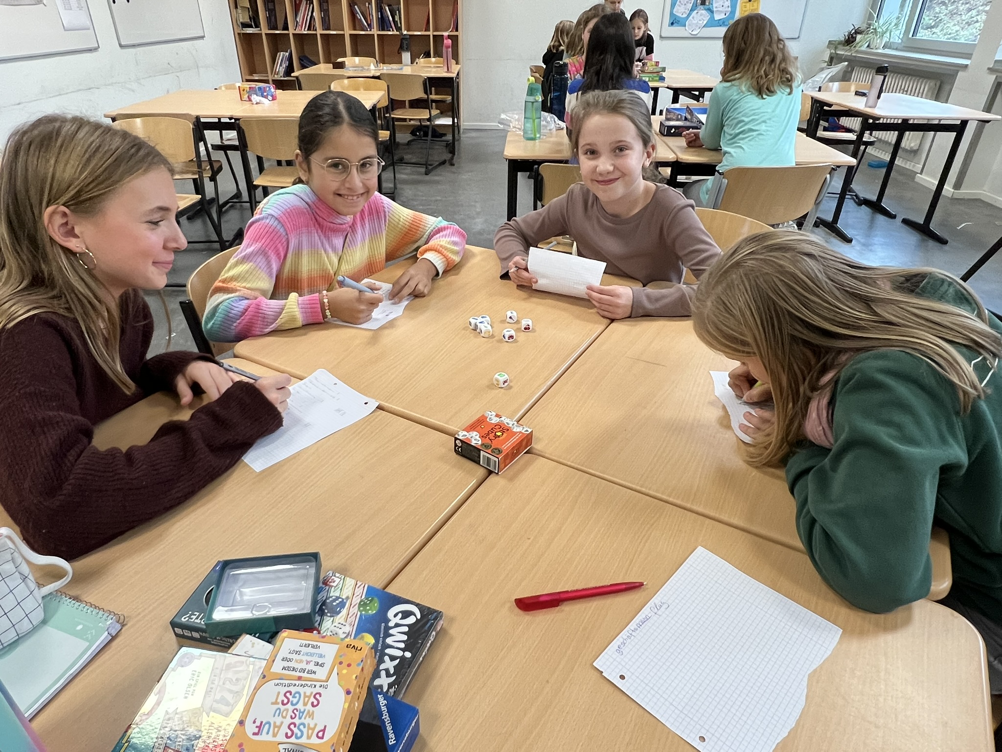 Nach der 4. Stunde wurden zwei Klassenräume umgestaltet: Ein Raum bot Platz für ein gemeinsames Gruppenspiel, während im anderen Raum verschiedene Gesellschaftsspiele aufgebaut wurden.