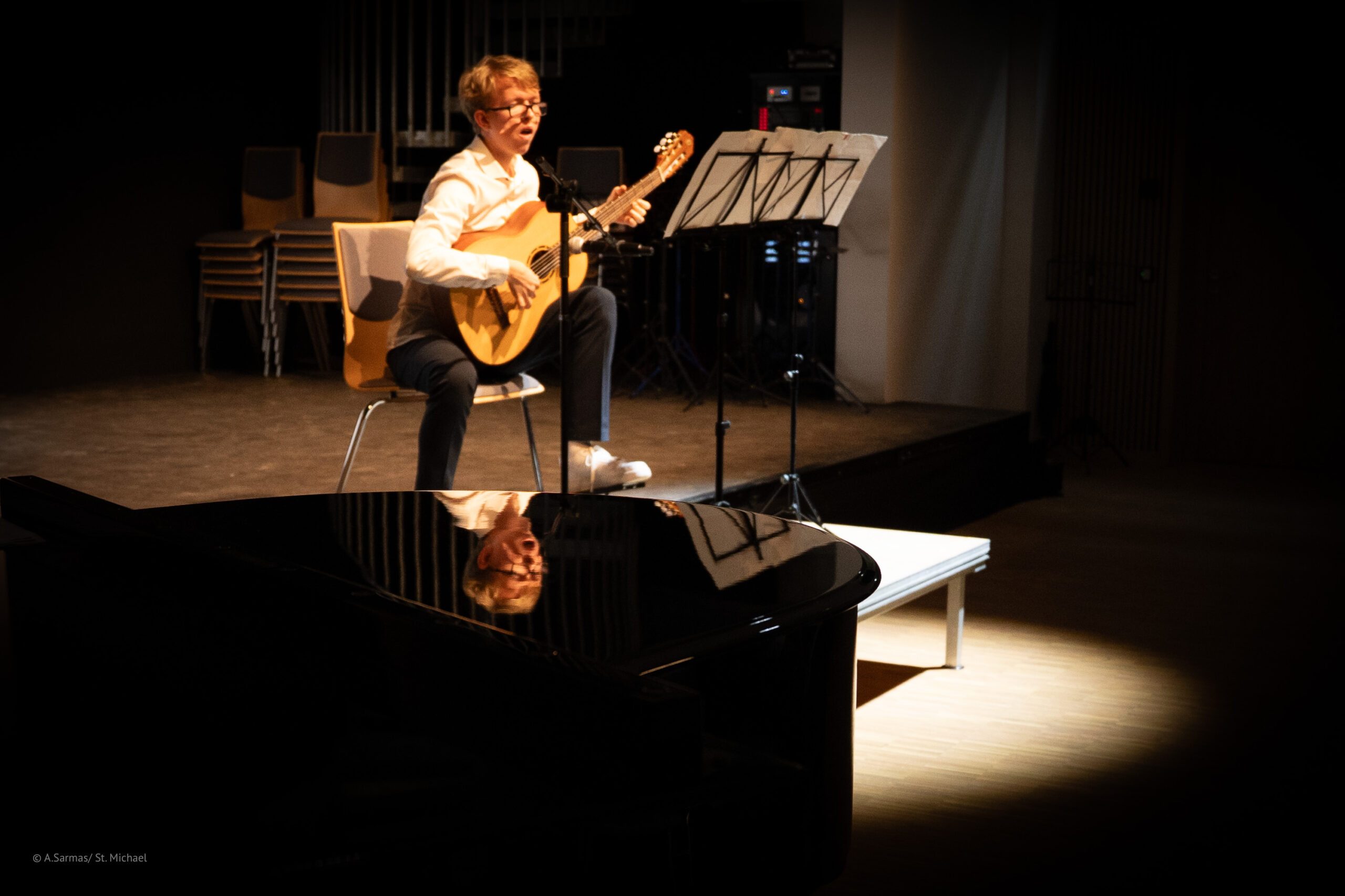Im Anschluss daran begeisterte Nico Perz (EF, St. Michael) mit seinem Gitarrensolo des Songs „Mary, did you know“. Begleitet wurde er am Klavier von Julia Reinen.