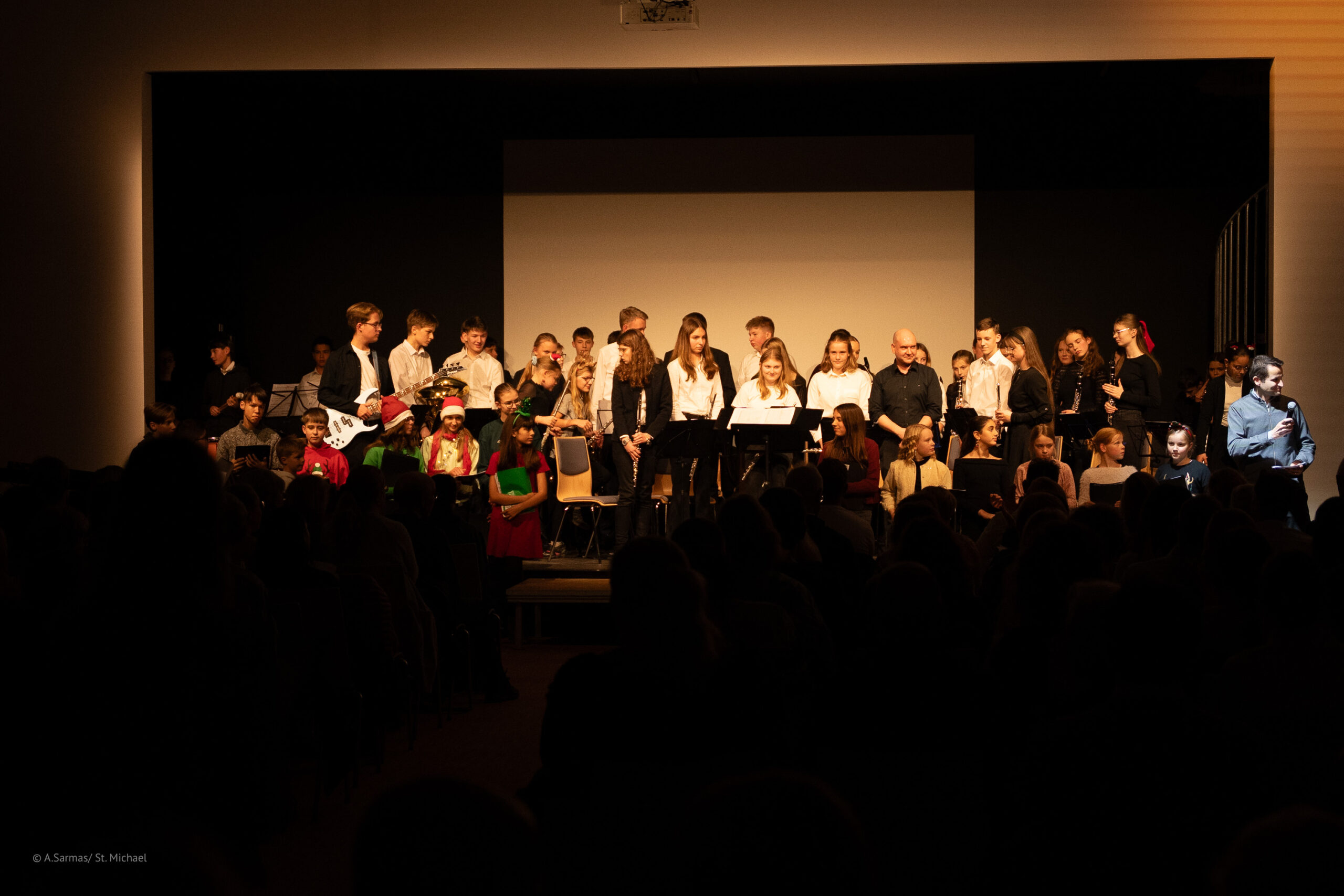 Kleine und große Musikerinnen und Musiker sorgten mit nachdenklichen und heiteren Stücken für ein glänzendes Ambiente in der neuen (Konzert-)Aula für einen großartigen Konzertgenuss!