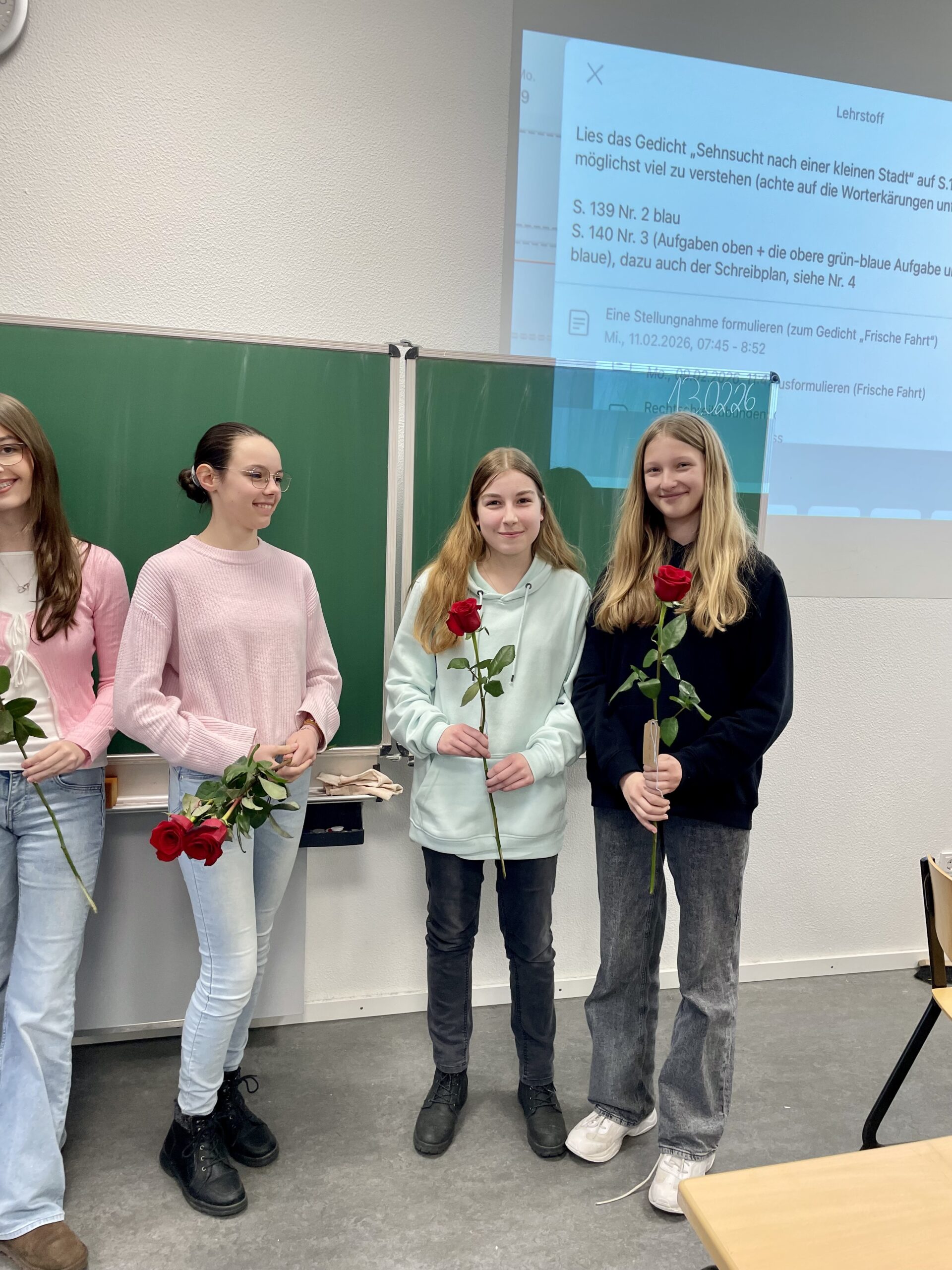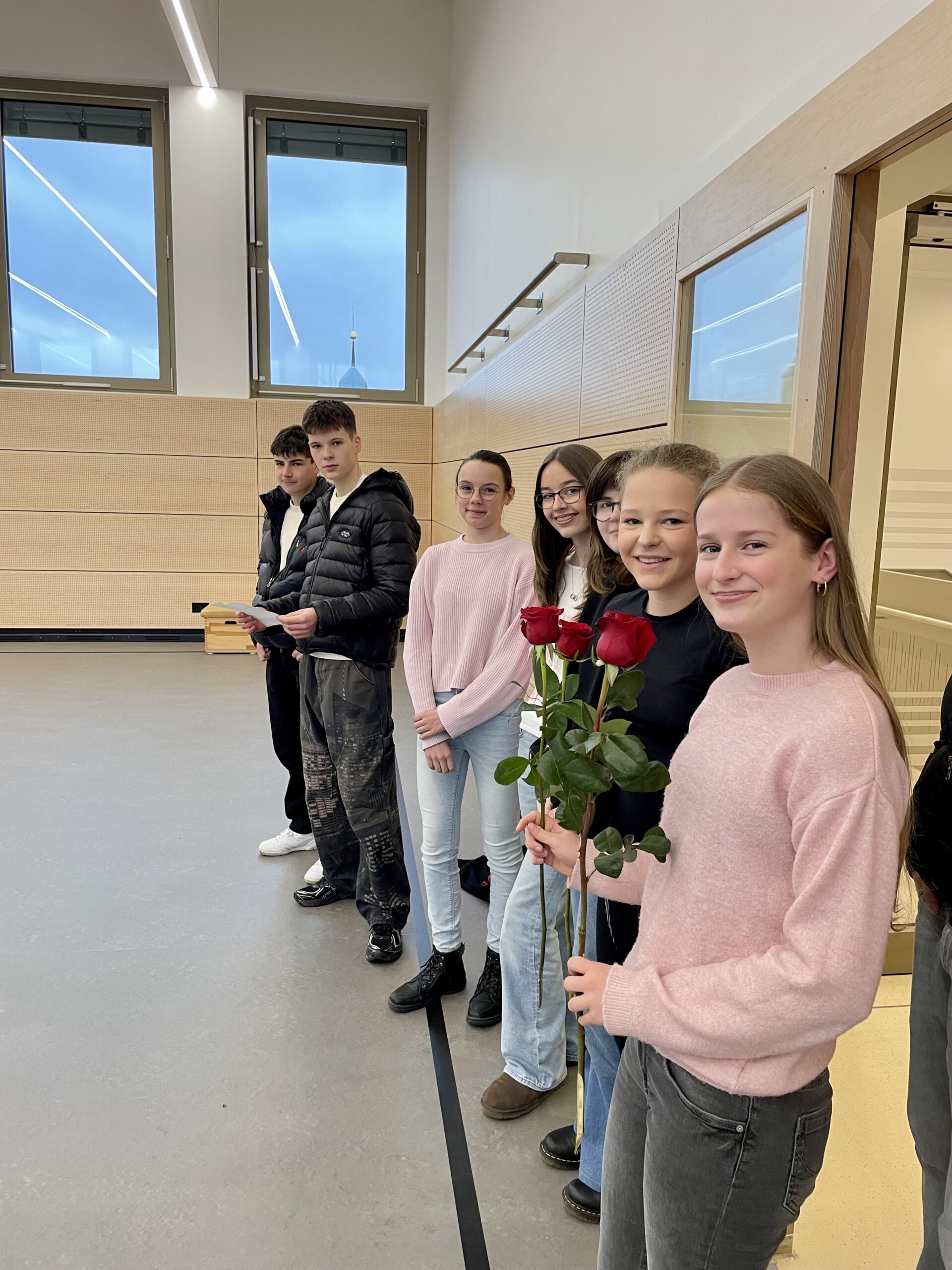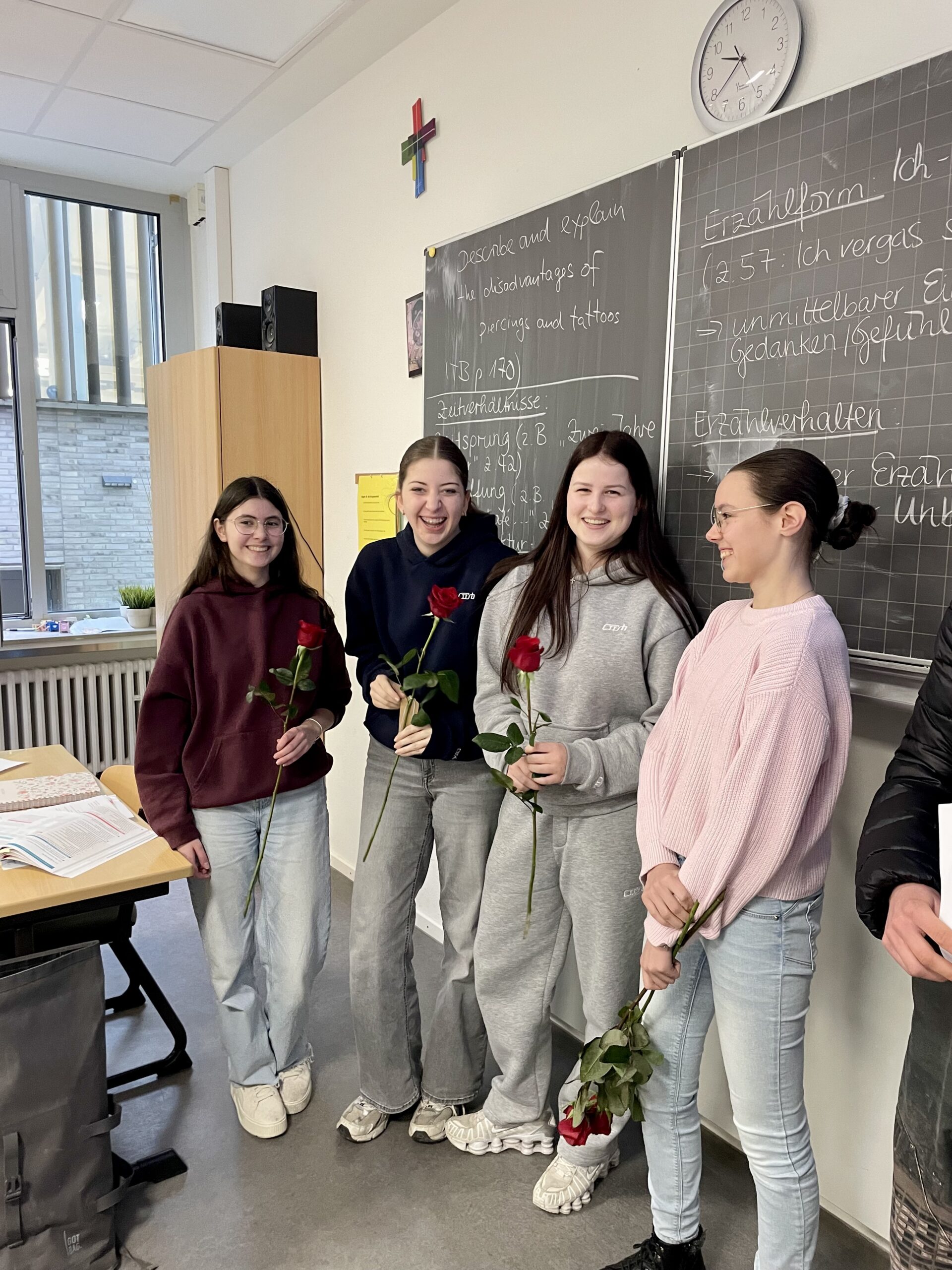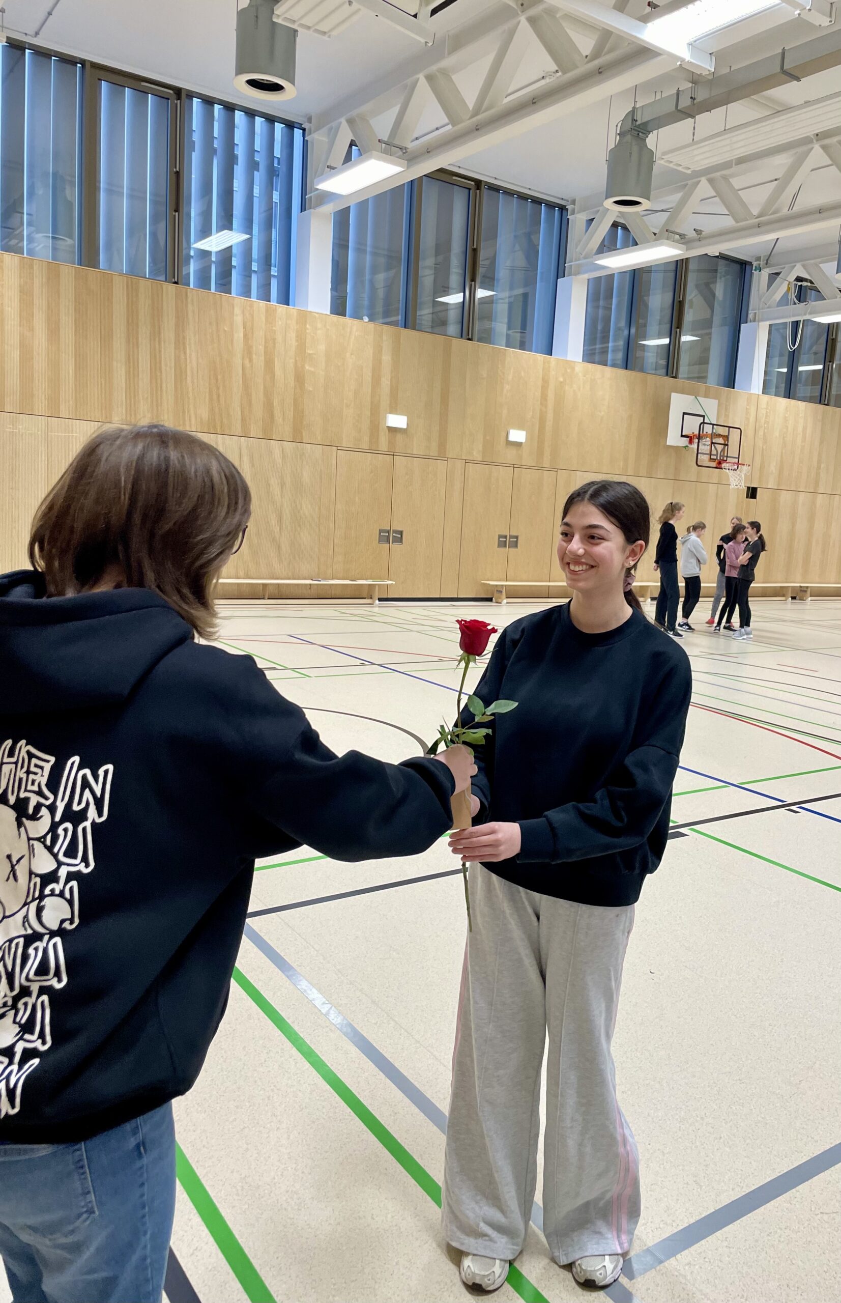 Passend zum darauffolgenden Valentinstag konnten bei der SV Rosen bestellt werden, um so einem lieben Menschen eine Freude zu machen. Verteilt wurden die Blumen ebenfalls von den Schülerinnen und Schülern, sodass alle Beschenkten im Schulalltag überrascht werden konnten.