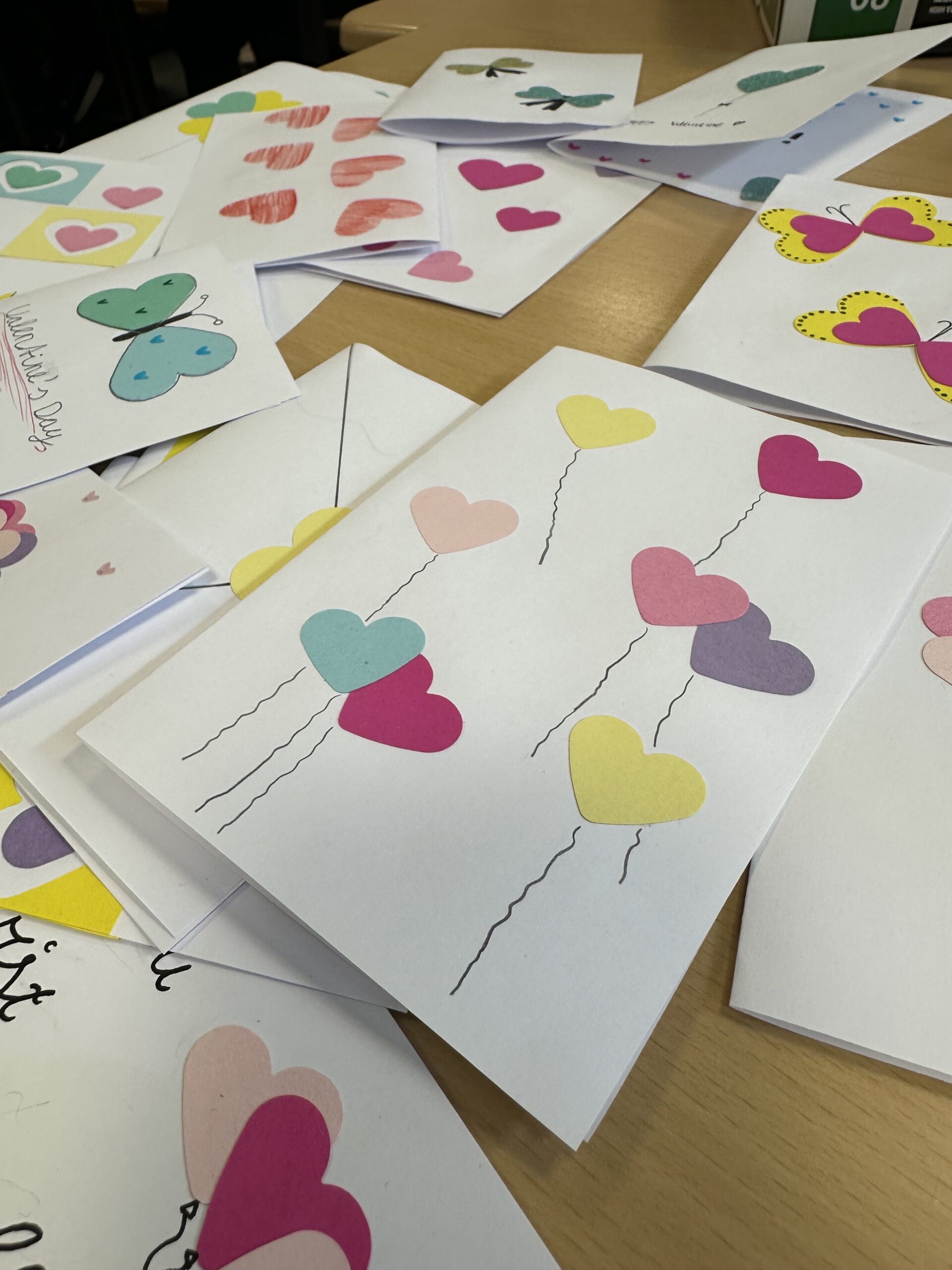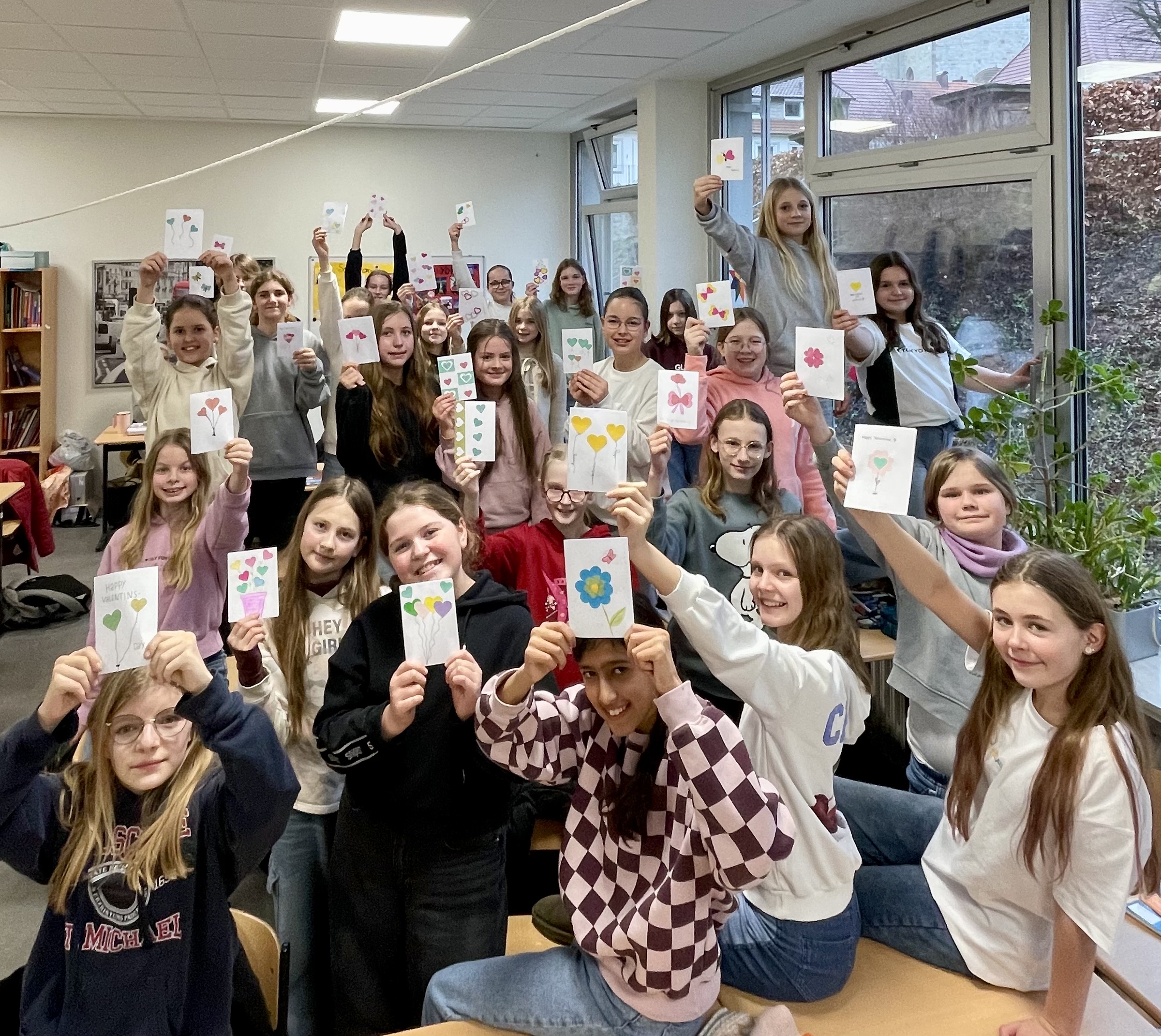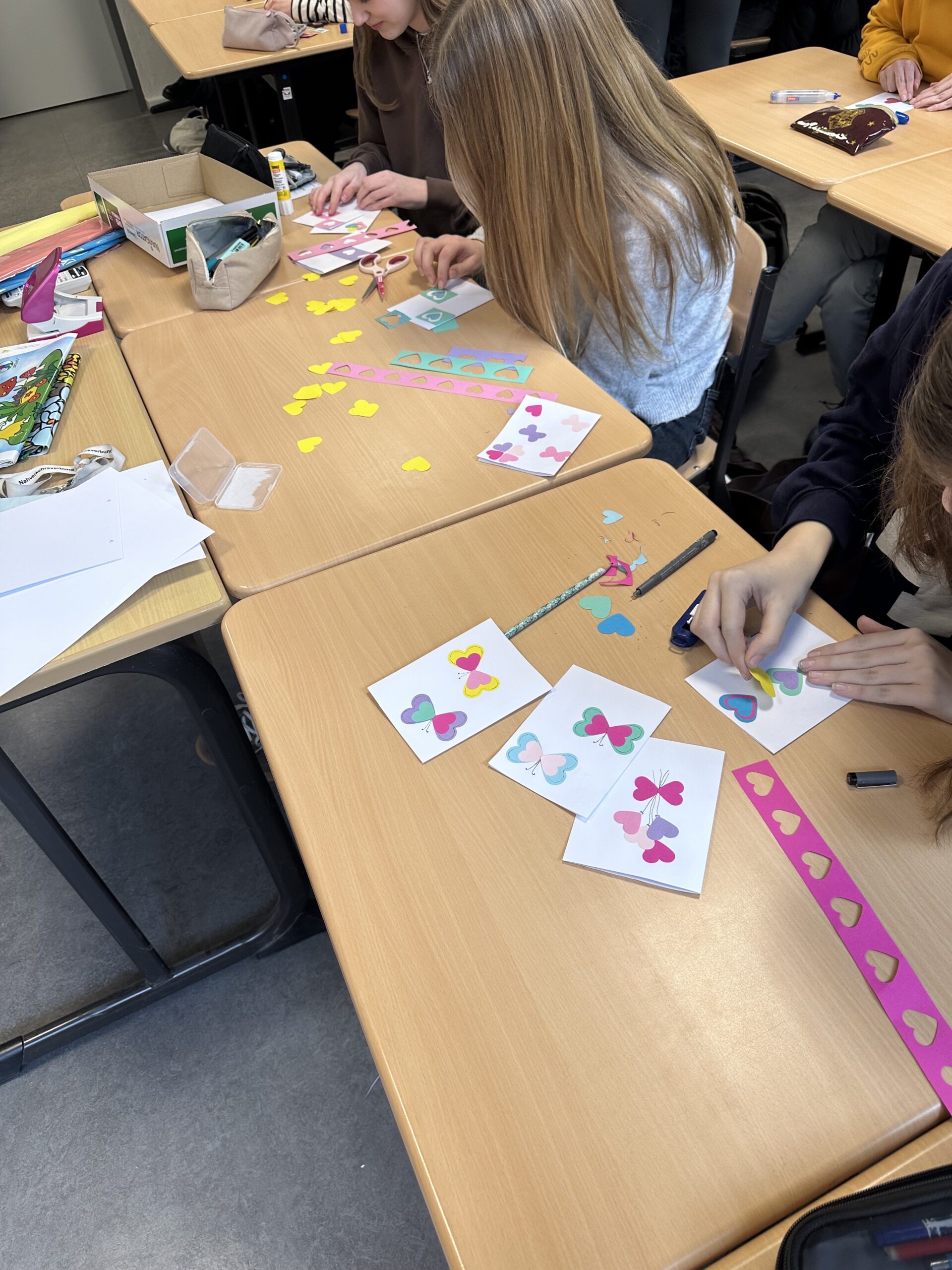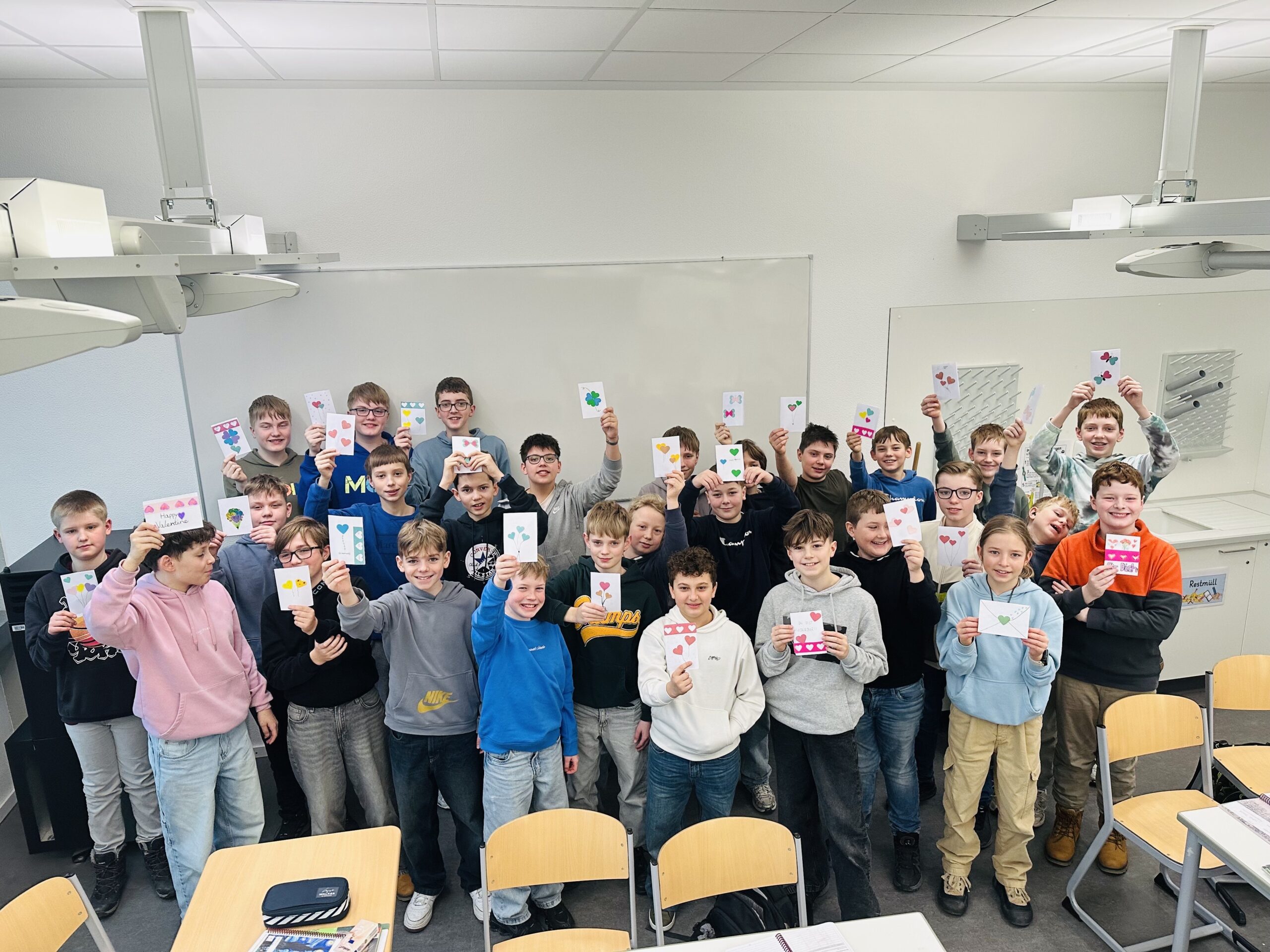 Für die kleinsten Mitglieder unserer Realschulgemeinschaft hatte die SV eine besondere Idee: Um allen Schülerinnen und Schülern des 5. und 6. Jahrgangs zu zeigen, dass sie ein wertvoller Teil der Schulgemeinschaft sind, haben die Schülerinnen der 10a Karten gebastelt, die ebenfalls am Freitag vor dem Valentinstag überreicht wurden. So konnten sich alle Kinder über eine individuelle, selbstgemachte Grußkarte freuen.
