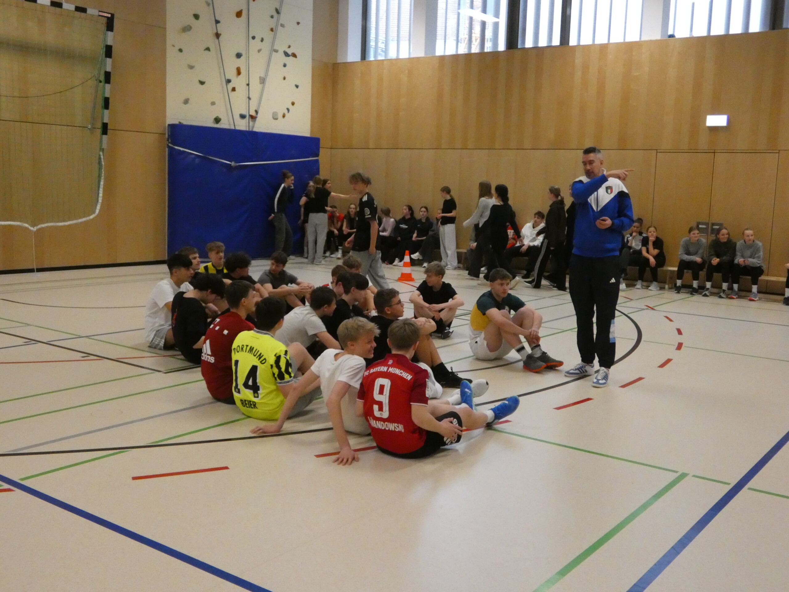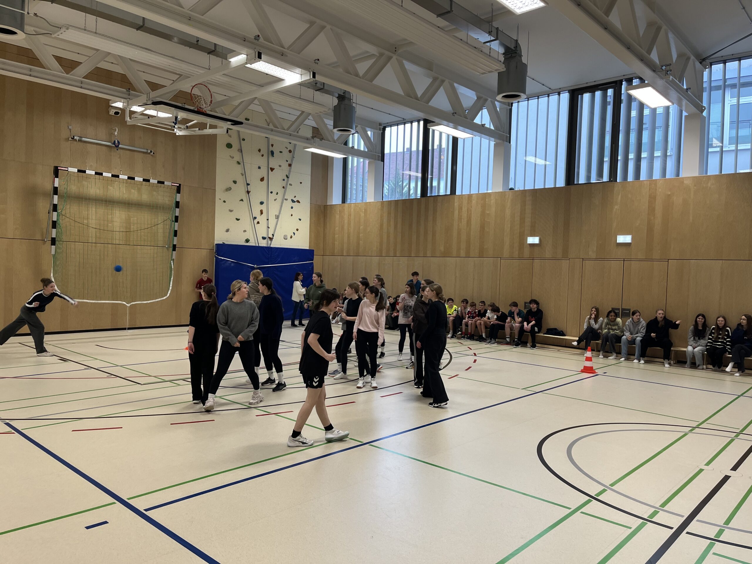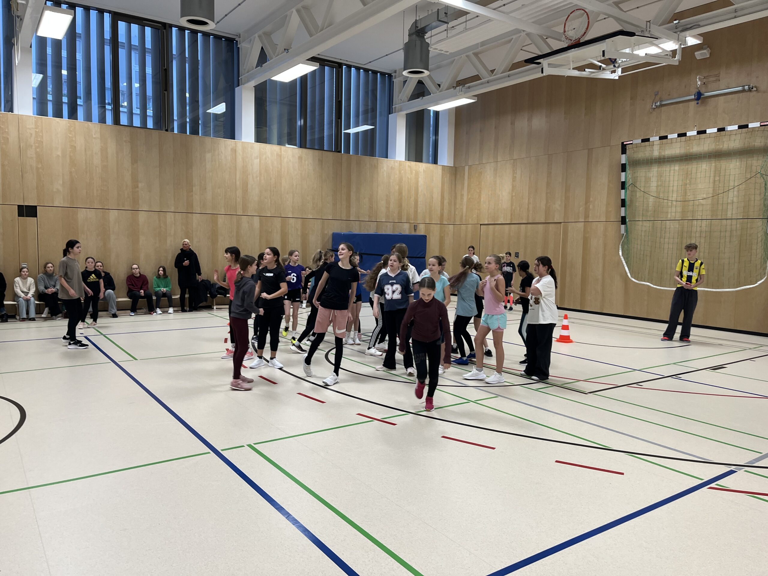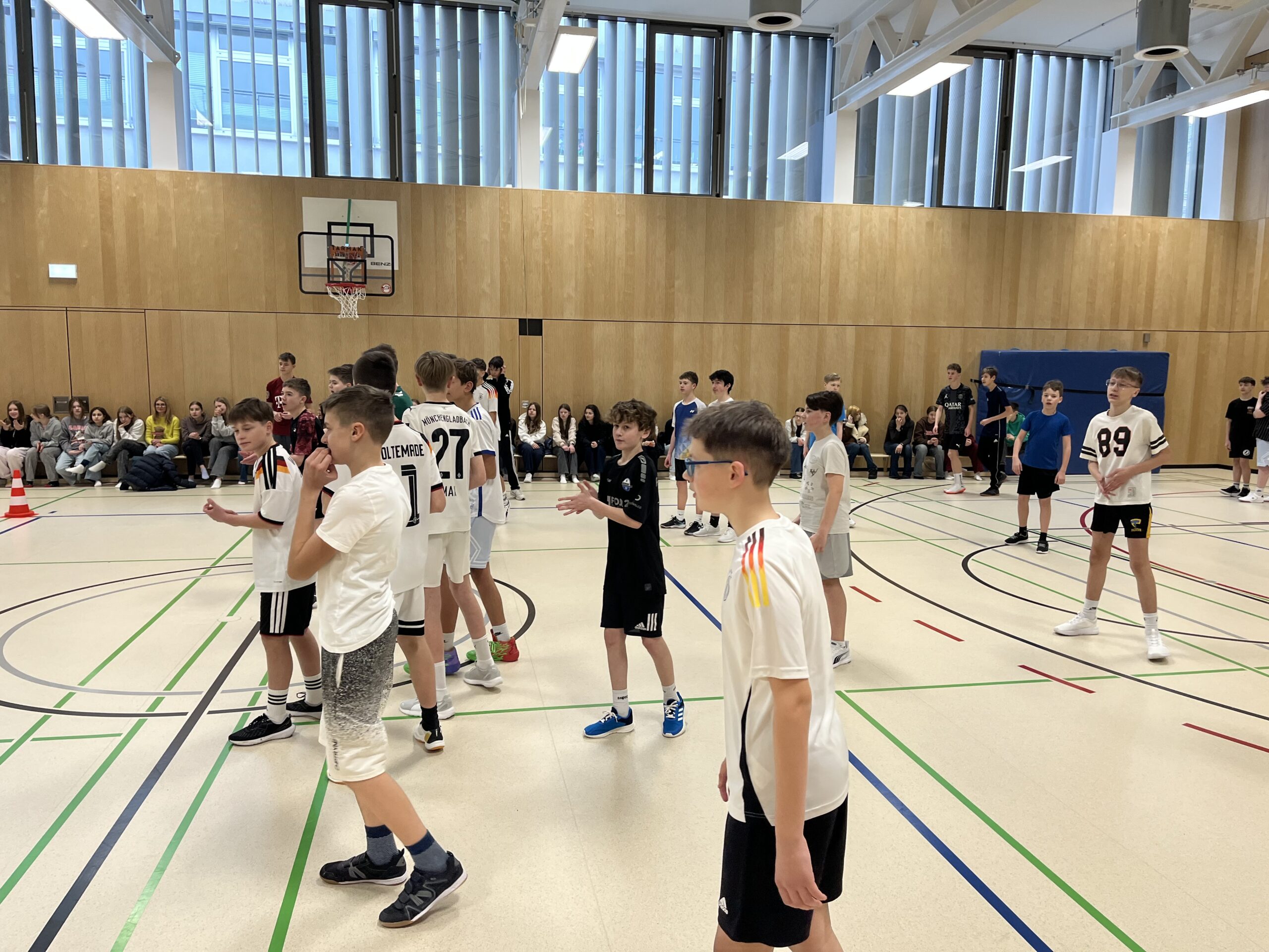 Ab 9.00 Uhr strömten die jeweiligen Klassen, die gegeneinander spielen sollten, mit ihren Fachlehrer/innen in die Halle 1 der Dreifachturnhalle. Jede Klasse hatte ein Spiel mit einer reinen Spielzeit von 15 Minuten.