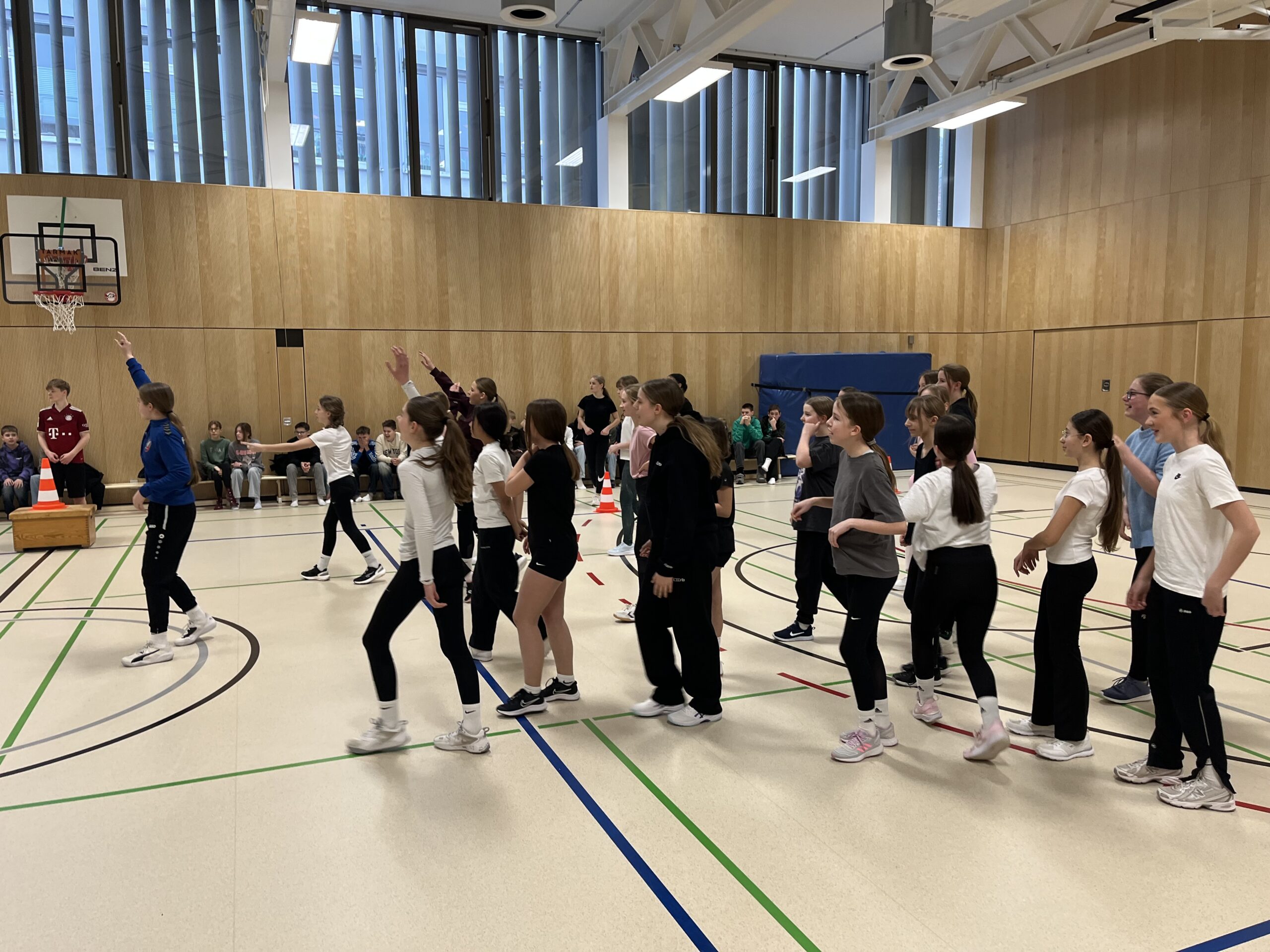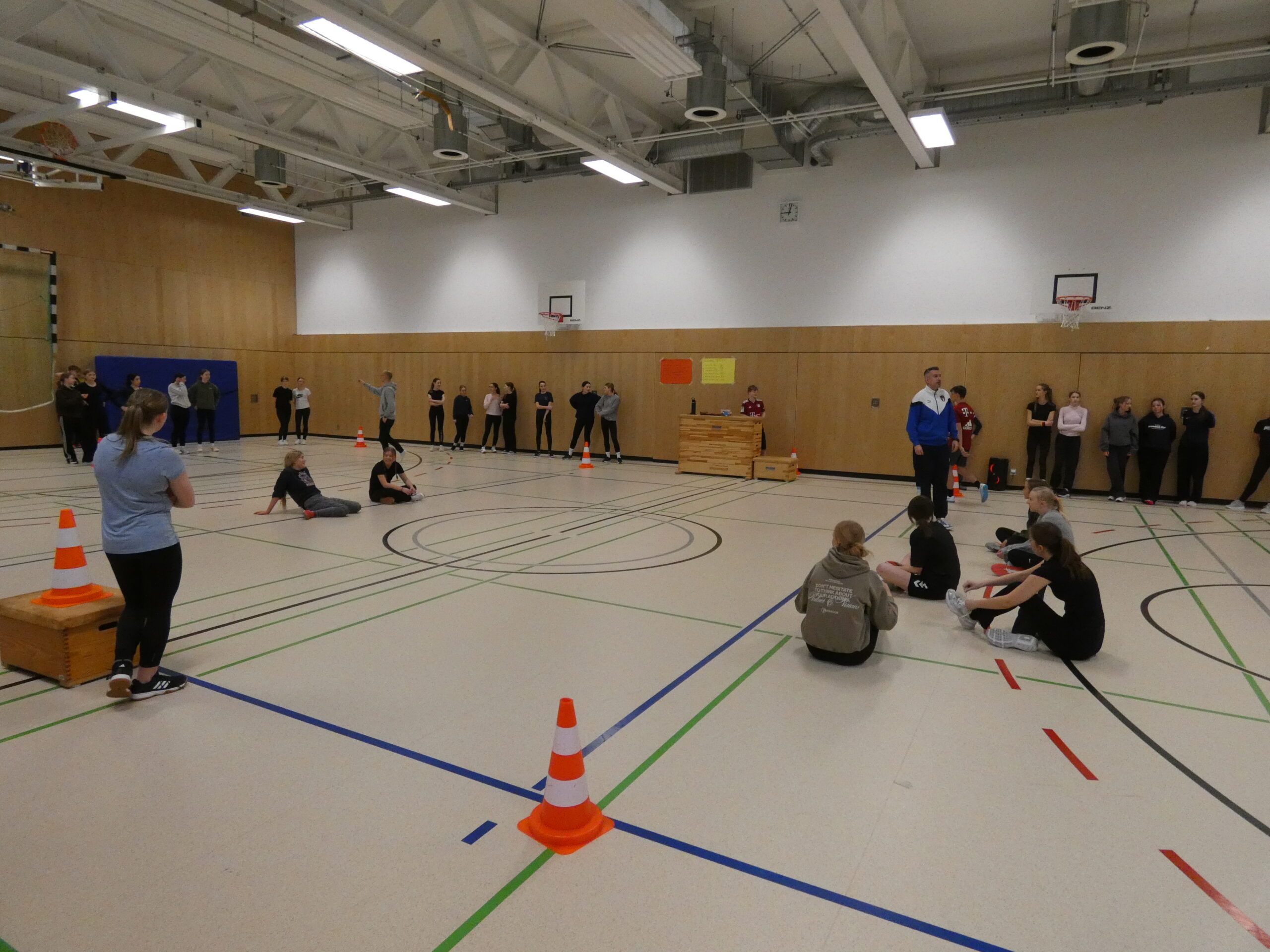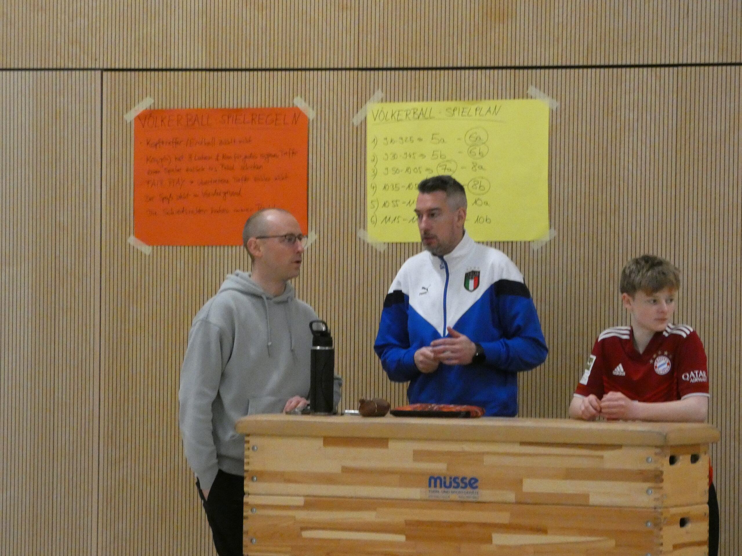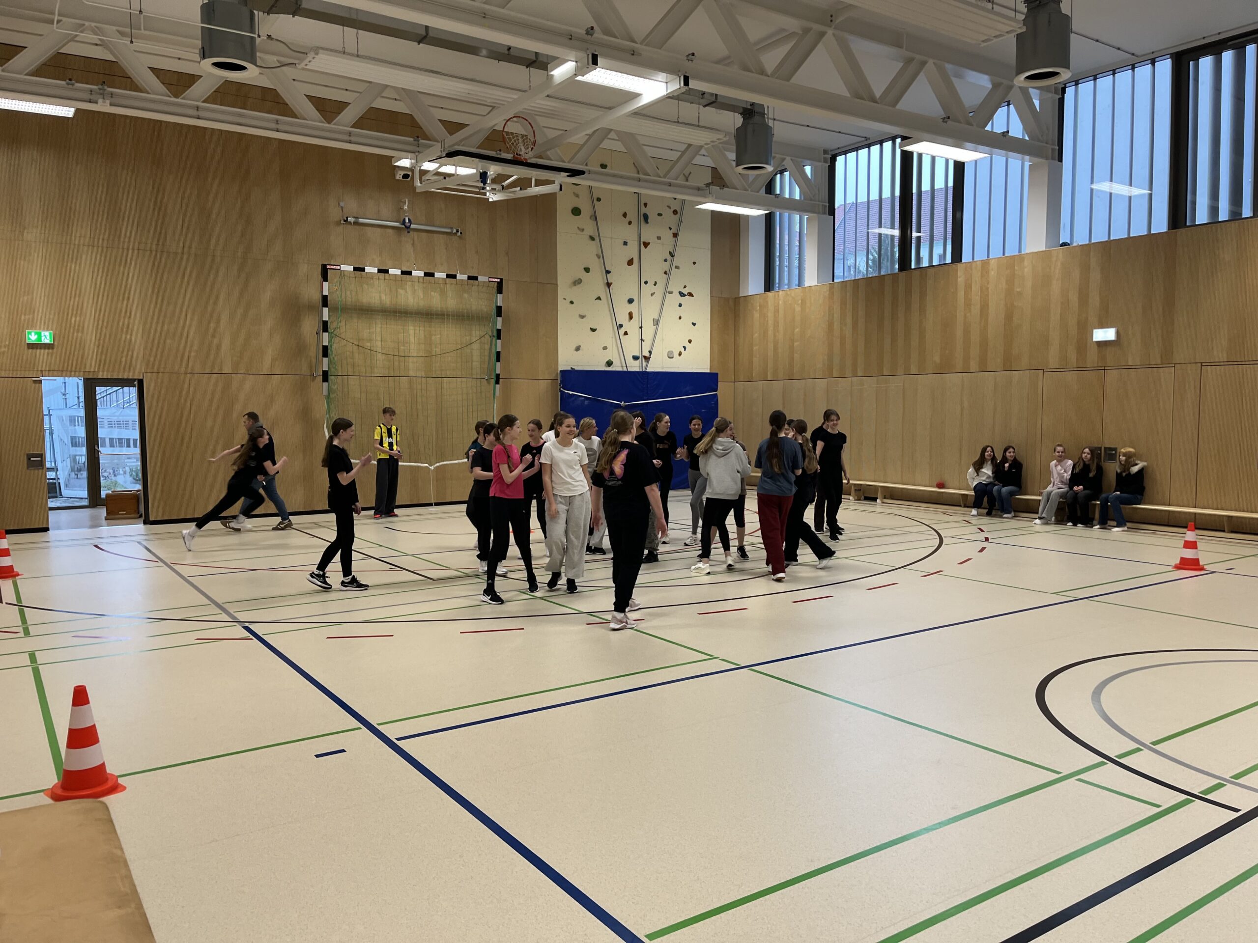 Ab 9.00 Uhr strömten die jeweiligen Klassen, die gegeneinander spielen sollten, mit ihren Fachlehrer/innen in die Halle 1 der Dreifachturnhalle. Jede Klasse hatte ein Spiel mit einer reinen Spielzeit von 15 Minuten.