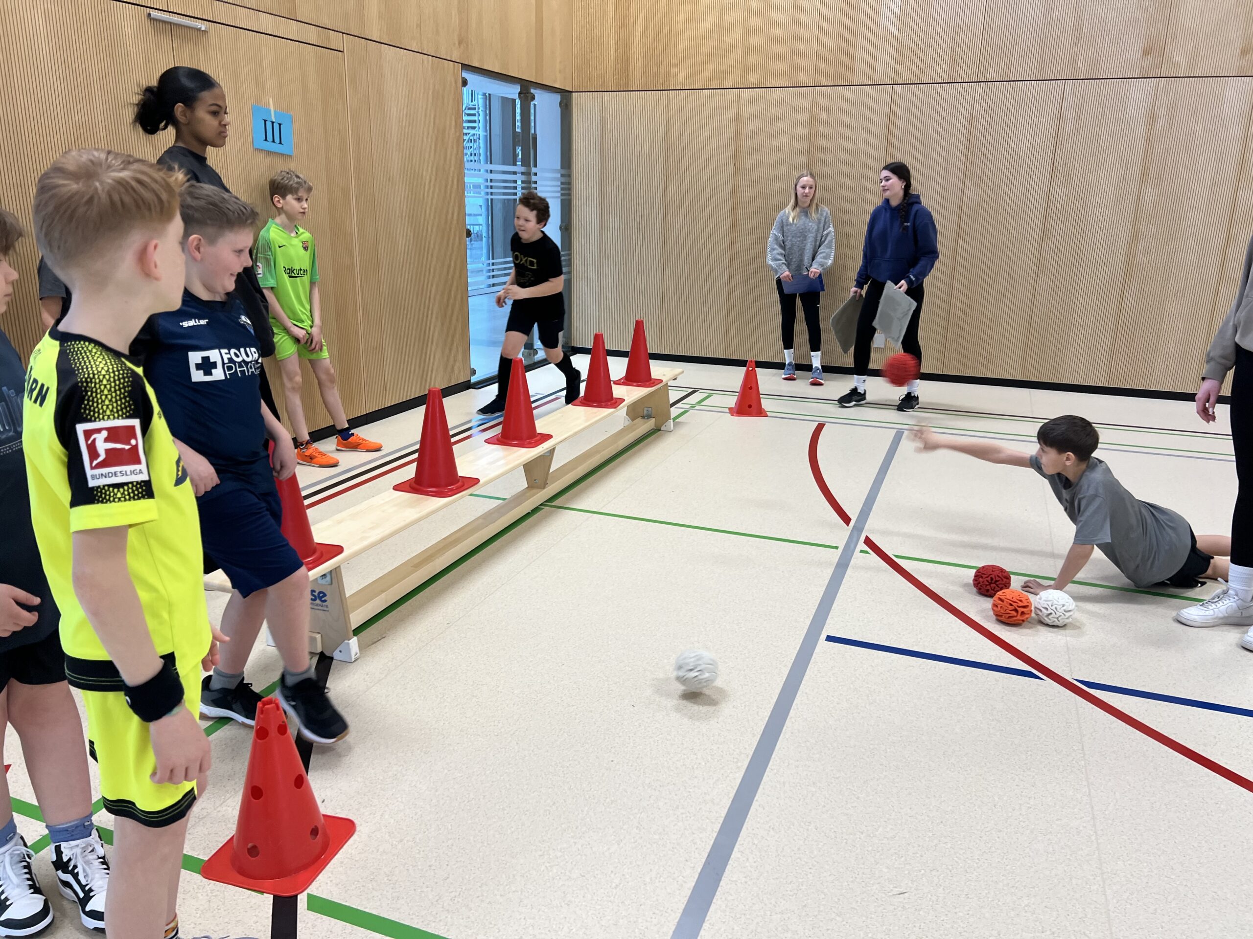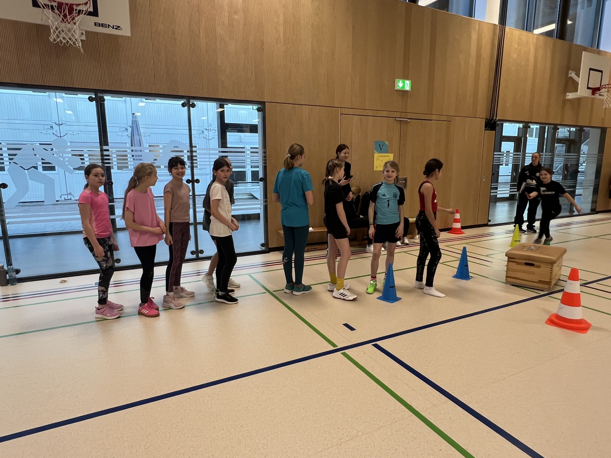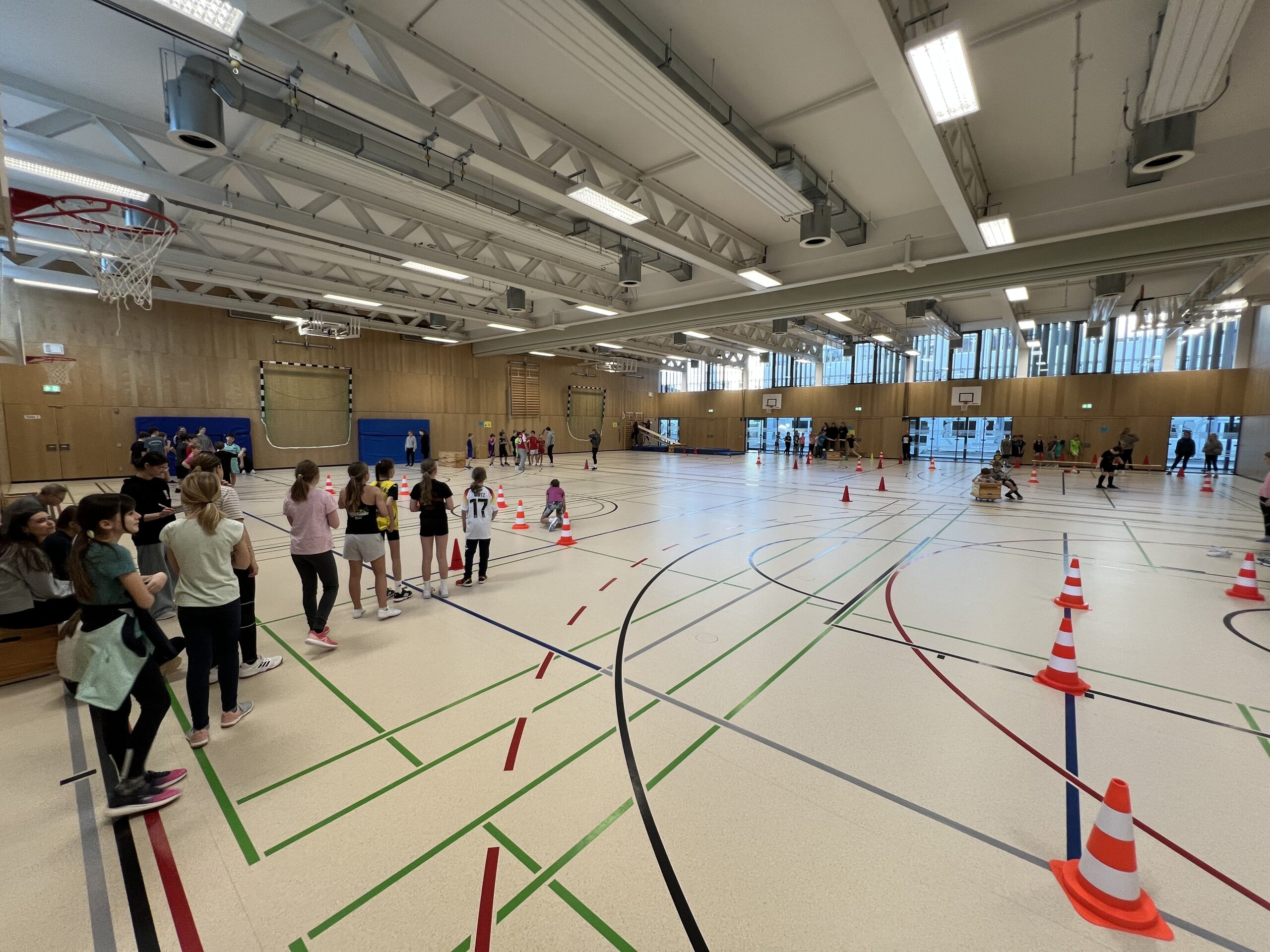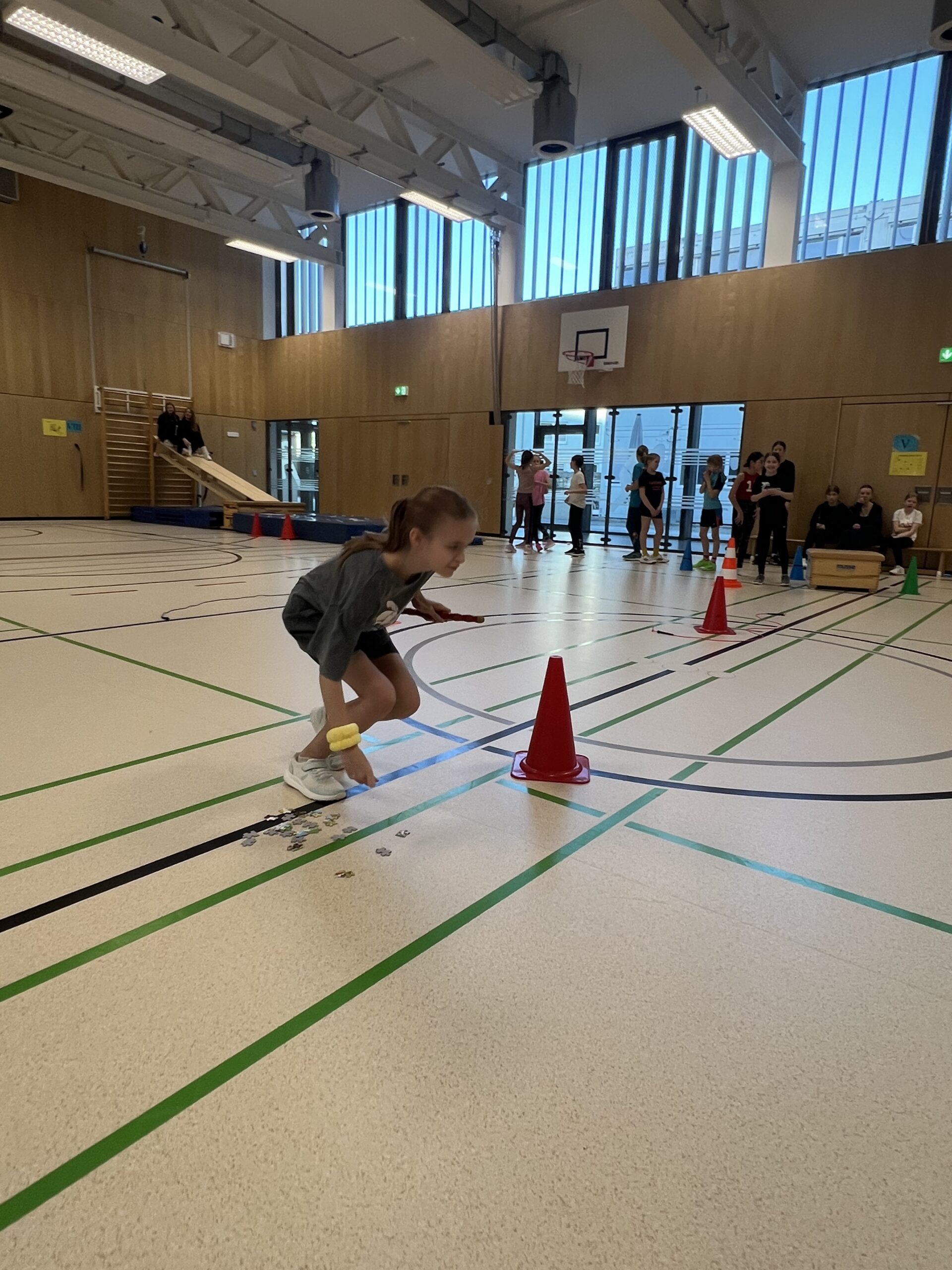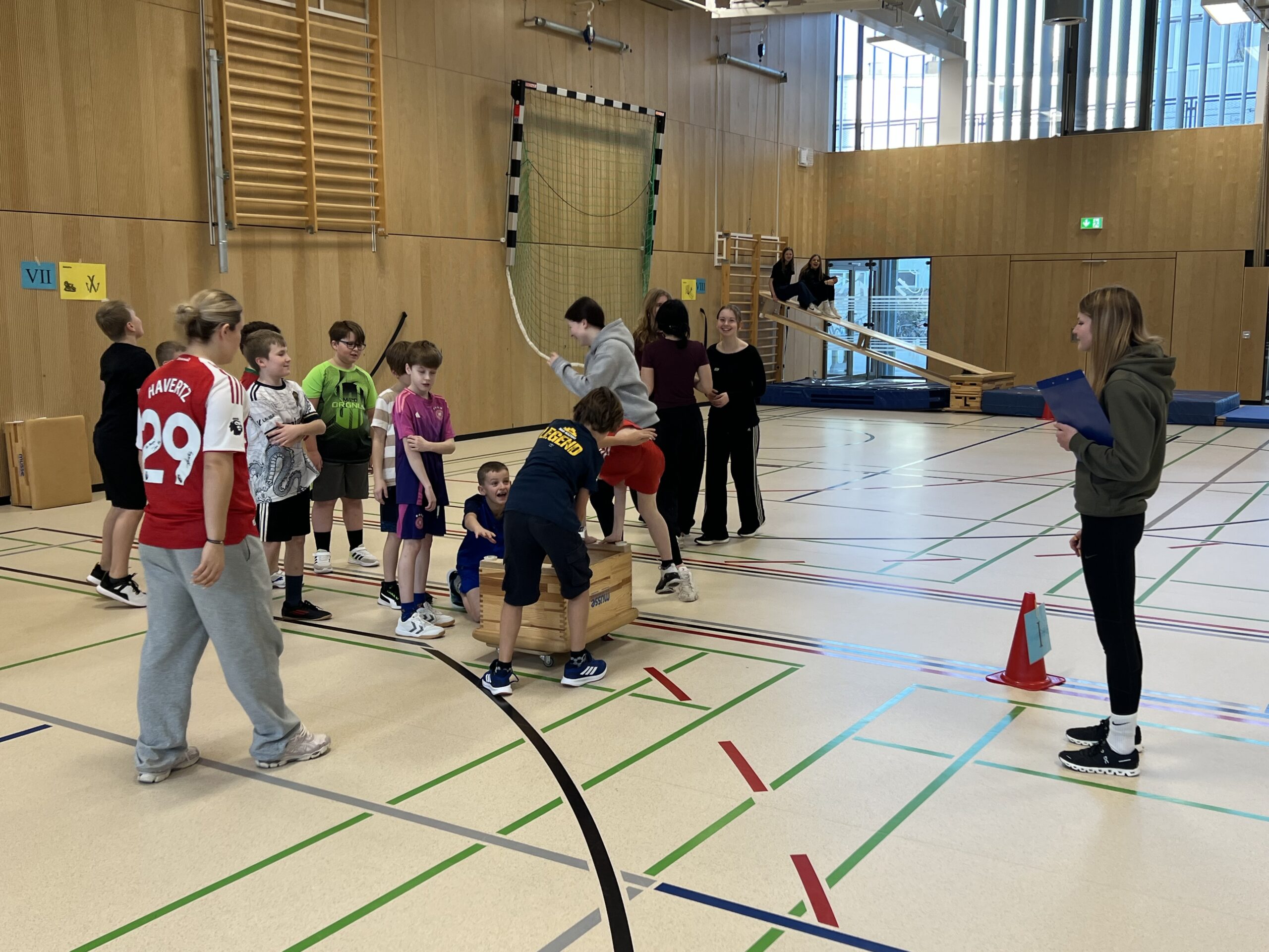 Die 6 Teams haben sich von der 1. bis zur 3. Stunde in den Disziplinen Curling, Skispringen, Bob fahren, Langlauf, Eiskunstlauf, Rodeln, Biathlon und dem schnellen Puzzeln eines Sportpuzzle miteinander gemessen. Die Schülerinnen der Klasse 10a unterstützten den ganzen Vormittag sehr engagiert und kompetent die den Tag durchführenden Sportlehrer/innen Frau Ernst, Herr Behnen und Herr Beyer. Sie bauten bereits in der 1. Stunde die Stationen auf und führten ein Aufwärmprogramm mit den schon aufgeregten Fünftklässler/innen durch. Nachdem alle Gruppen mit viel Spaß alle Stationen durchlaufen hatten, wurde der Parcours gemeinsam abgebaut und die Schülerinnen der 10a beschäftigten die 5. Klassen mit einem kleinen Völkerballspiel. Frau Ernst und Herr Beyer werteten in der Zwischenzeit die Punkte aus. Mit der Bekanntgabe der Ergebnisse und der Siegerehrung, zu der auch unser Schulleiter M. Kamp erschien und gratulierte, ging ein erfolgreicher Schultag voller sportlichem Spaß zu Ende.