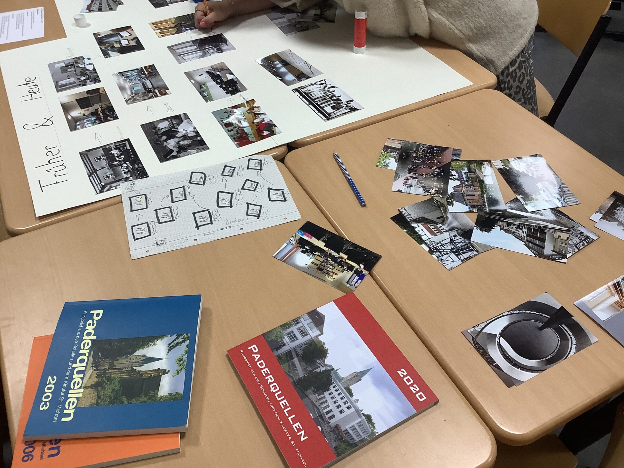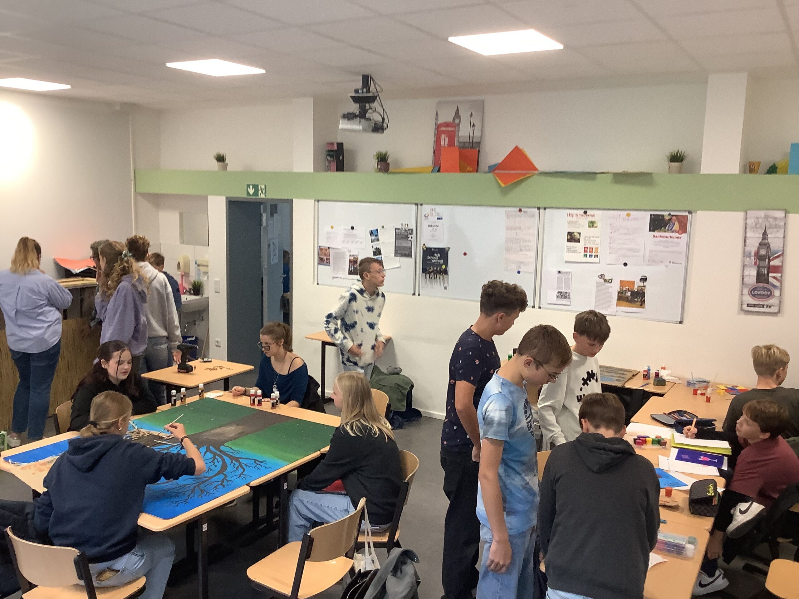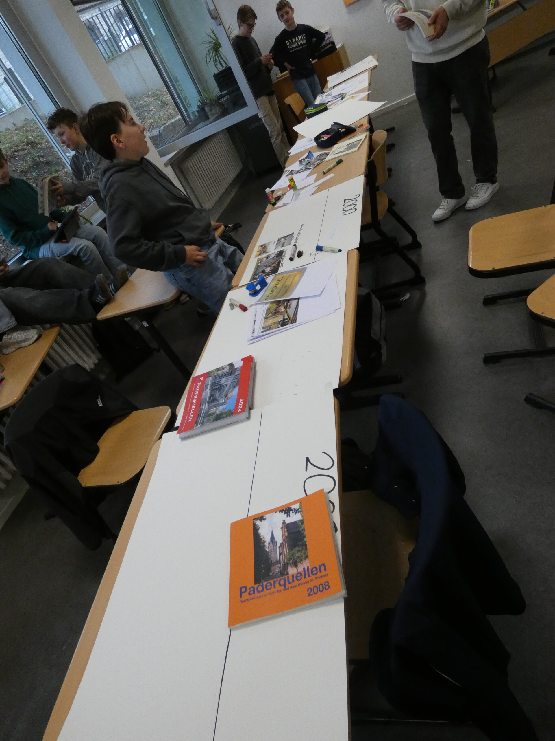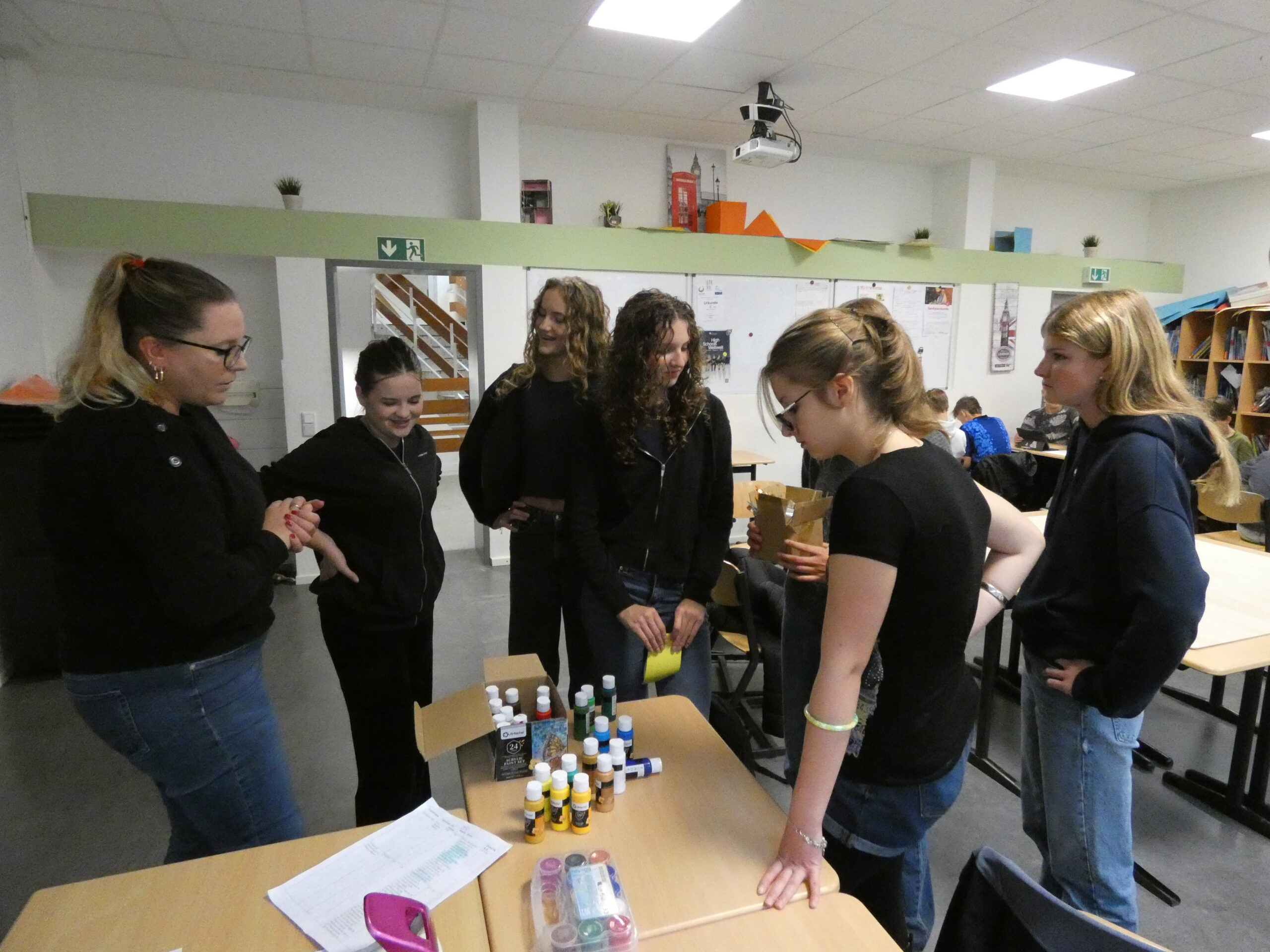 In zahlreichen Projekten arbeiteten die Schülerinnen und Schüler an kreativen, handwerklichen, historischen oder digitalen Aufgaben: Beim „Kochen wie 1050“ mit Frau Schulze-Waltrup gab es viele altehrwürdige Rezepte und es wurden so leckere Sachen wie Toast Hawaii und Frikadellen mit Kartoffelpüree gekocht. Im Projekt „Natur und Technik“ von Herrn Kamp besuchten die Schüler/innen die Landesgartenschau in Bad Lippspringe und das HNF und erlebten tolle Kürbis-Figuren und Workshops. Im Projekt „Geschichte der Schule“ erarbeiteten Herr Doffiné und Herr Blömeke mit ihren Teilnehmer/innen eine ausführlich bebilderte Dokumentation zur 75-jährigen Geschichte der Schule und interviewten ehemalige Lehrer/innen der Schule. Frau Taschner und Frau Tölle arbeiteten mit ihren Schüler/innen im Projekt „Nachhaltiges Leben“ zu interessanten Skulpturen. Beim „Sportunterricht der 50er Jahre“ führte Frau Ernst ihre Sportbegeisterten in eine Zeit zurück, wo Turnen und körperliche Ertüchtigung im Vordergrund standen. Frau Hagedorn und Frau Schartner erstellten in ihrem Projekt „Gestalten und Basteln für das Jubiläum“ mit ihren Teilnehmer/innen den wunderschönen Schmuck für den Abend der Begegnung, der von bunten Krepp-Blumen über Herzgirlanden bis zu blumigen 75 Jahre Ziffern reichte.Im Projekt „Tanz durch die Jahrzehnte“ erfreute Frau Altstädt ihre tanzfreudige Schülergruppe mit Gruppentänzen aus unterschiedlichen Jahrzehnten. Frau Frewer gestaltete in ihrem Projekt „Gestalten zum Motto des Schuljubiläums“ ein großformatiges Brett mit Lebensbaum, auf dem man sich mit einem Fingerabdruck verewigen konnte, den schuleigenen Walk of Fame mit einem Stern für jede Schulleiterin und Schulleiter sowie stellvertretende Schulleitung und die Cocktail-Bilder für die Cocktail-Bar, die von der Projektgruppe beim Schulfest aufgestellt wurde. Das Projekt „Bau eigener Strandstühle“ von Herrn Gindner und Herrn Bergmann steuerte dazu die selbst gebauten Strandstühle bei, die eine trendige Cocktail-Lounge vor der Cocktail-Bar ergaben. Frau Hagedorn und Frau Stübbe informierten in ihrem Projekt „Ehrenamt“ über mögliches ehrenamtliches Engagement und besuchten hierzu zum Beispiel das Altenheim Westphalenhof und die Paderborner Tafel, wo die Schüler/innen auch tatkräftig mithalfen. Im Projekt „Ahornsportpark“ verbrachten die Teilnehmer den ersten Projekttag mit Herrn Beyer und Herrn Behnen im Ahornsportpark und entwickelten am zweiten Tag einfache Sport-und Spielflächen, die beim Schulfest für Freude bei den jüngeren Schüler/innen führte. Beim Projekt „Gestaltung der Flure im Musikforum“ ließ Frau Reinen einen professionellen Fotografen gemeinsam mit den Schüler/innen Instrumenten-Fotos erstellen, die nun die Flure unseres neuen Musikforums schmücken werden. Frau Nübel erstellte in ihrem Projekt „Filzmännchen“ mit ihren Teilnehmer/innen Kunstwerke à la Keith Haring, allerdings aus Pappe und Filz. Die Teilnehmer des Projekts von Frau Flottmeier interviewte ehemalige Schülerinnen zu ihren Erinnerungen an ihre Schulzeit und erstellten dazu eine Videodokumentation. Im Projekt „Video-und Fotodokumentation des 75-jährigen Jubiläums“ schickte Frau Reinstadler ihre Teilnehmer/innen als Reporter/innen in die anderen Projekte, um Fotos und kurze Videos zu drehen, die die Projekttage am Ende in einem zusammengeschnittenen Video dokumentierten.