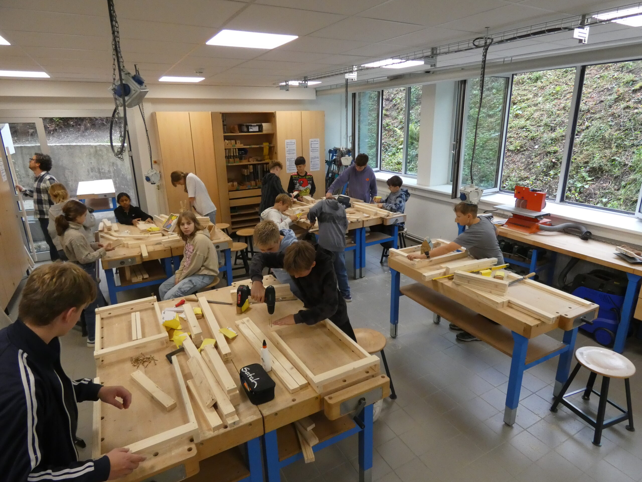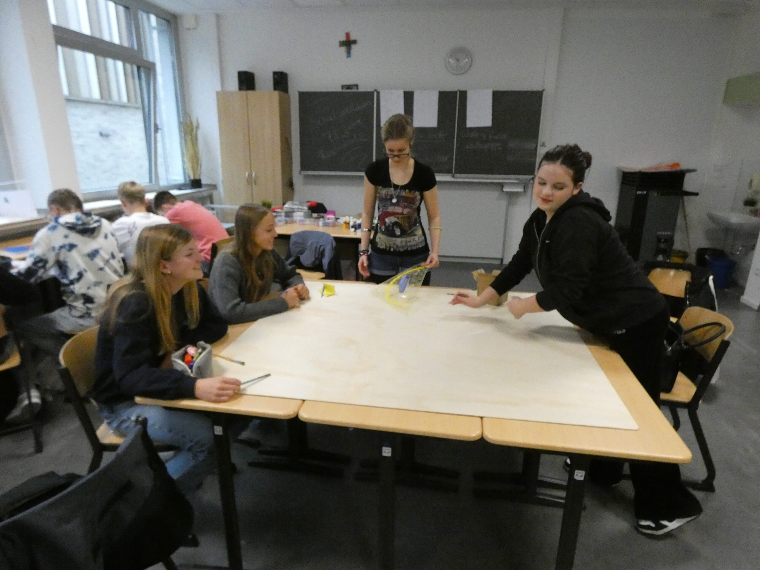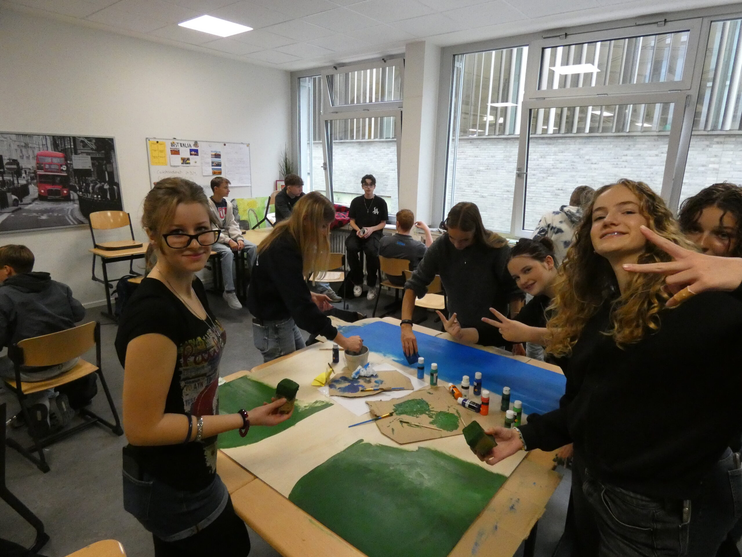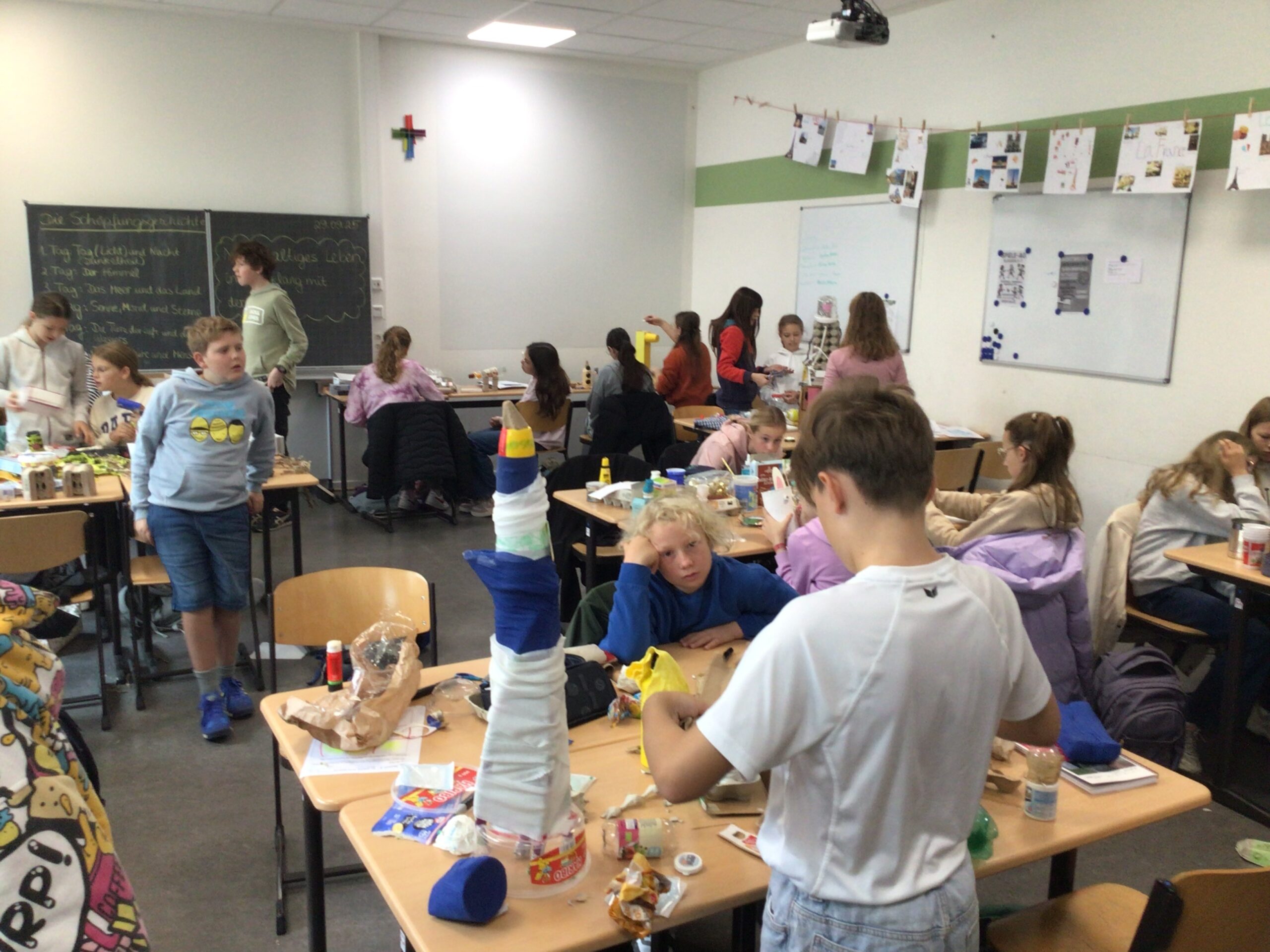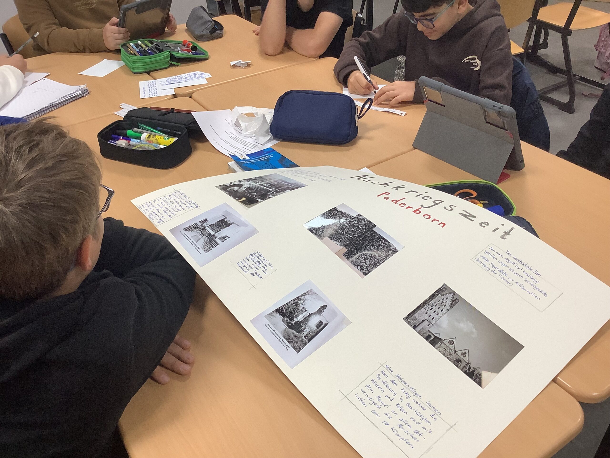 In zahlreichen Projekten arbeiteten die Schülerinnen und Schüler an kreativen, handwerklichen, historischen oder digitalen Aufgaben: Beim „Kochen wie 1050“ mit Frau Schulze-Waltrup gab es viele altehrwürdige Rezepte und es wurden so leckere Sachen wie Toast Hawaii und Frikadellen mit Kartoffelpüree gekocht. Im Projekt „Natur und Technik“ von Herrn Kamp besuchten die Schüler/innen die Landesgartenschau in Bad Lippspringe und das HNF und erlebten tolle Kürbis-Figuren und Workshops. Im Projekt „Geschichte der Schule“ erarbeiteten Herr Doffiné und Herr Blömeke mit ihren Teilnehmer/innen eine ausführlich bebilderte Dokumentation zur 75-jährigen Geschichte der Schule und interviewten ehemalige Lehrer/innen der Schule. Frau Taschner und Frau Tölle arbeiteten mit ihren Schüler/innen im Projekt „Nachhaltiges Leben“ zu interessanten Skulpturen. Beim „Sportunterricht der 50er Jahre“ führte Frau Ernst ihre Sportbegeisterten in eine Zeit zurück, wo Turnen und körperliche Ertüchtigung im Vordergrund standen. Frau Hagedorn und Frau Schartner erstellten in ihrem Projekt „Gestalten und Basteln für das Jubiläum“ mit ihren Teilnehmer/innen den wunderschönen Schmuck für den Abend der Begegnung, der von bunten Krepp-Blumen über Herzgirlanden bis zu blumigen 75 Jahre Ziffern reichte.Im Projekt „Tanz durch die Jahrzehnte“ erfreute Frau Altstädt ihre tanzfreudige Schülergruppe mit Gruppentänzen aus unterschiedlichen Jahrzehnten. Frau Frewer gestaltete in ihrem Projekt „Gestalten zum Motto des Schuljubiläums“ ein großformatiges Brett mit Lebensbaum, auf dem man sich mit einem Fingerabdruck verewigen konnte, den schuleigenen Walk of Fame mit einem Stern für jede Schulleiterin und Schulleiter sowie stellvertretende Schulleitung und die Cocktail-Bilder für die Cocktail-Bar, die von der Projektgruppe beim Schulfest aufgestellt wurde. Das Projekt „Bau eigener Strandstühle“ von Herrn Gindner und Herrn Bergmann steuerte dazu die selbst gebauten Strandstühle bei, die eine trendige Cocktail-Lounge vor der Cocktail-Bar ergaben. Frau Hagedorn und Frau Stübbe informierten in ihrem Projekt „Ehrenamt“ über mögliches ehrenamtliches Engagement und besuchten hierzu zum Beispiel das Altenheim Westphalenhof und die Paderborner Tafel, wo die Schüler/innen auch tatkräftig mithalfen. Im Projekt „Ahornsportpark“ verbrachten die Teilnehmer den ersten Projekttag mit Herrn Beyer und Herrn Behnen im Ahornsportpark und entwickelten am zweiten Tag einfache Sport-und Spielflächen, die beim Schulfest für Freude bei den jüngeren Schüler/innen führte. Beim Projekt „Gestaltung der Flure im Musikforum“ ließ Frau Reinen einen professionellen Fotografen gemeinsam mit den Schüler/innen Instrumenten-Fotos erstellen, die nun die Flure unseres neuen Musikforums schmücken werden. Frau Nübel erstellte in ihrem Projekt „Filzmännchen“ mit ihren Teilnehmer/innen Kunstwerke à la Keith Haring, allerdings aus Pappe und Filz. Die Teilnehmer des Projekts von Frau Flottmeier interviewte ehemalige Schülerinnen zu ihren Erinnerungen an ihre Schulzeit und erstellten dazu eine Videodokumentation. Im Projekt „Video-und Fotodokumentation des 75-jährigen Jubiläums“ schickte Frau Reinstadler ihre Teilnehmer/innen als Reporter/innen in die anderen Projekte, um Fotos und kurze Videos zu drehen, die die Projekttage am Ende in einem zusammengeschnittenen Video dokumentierten.