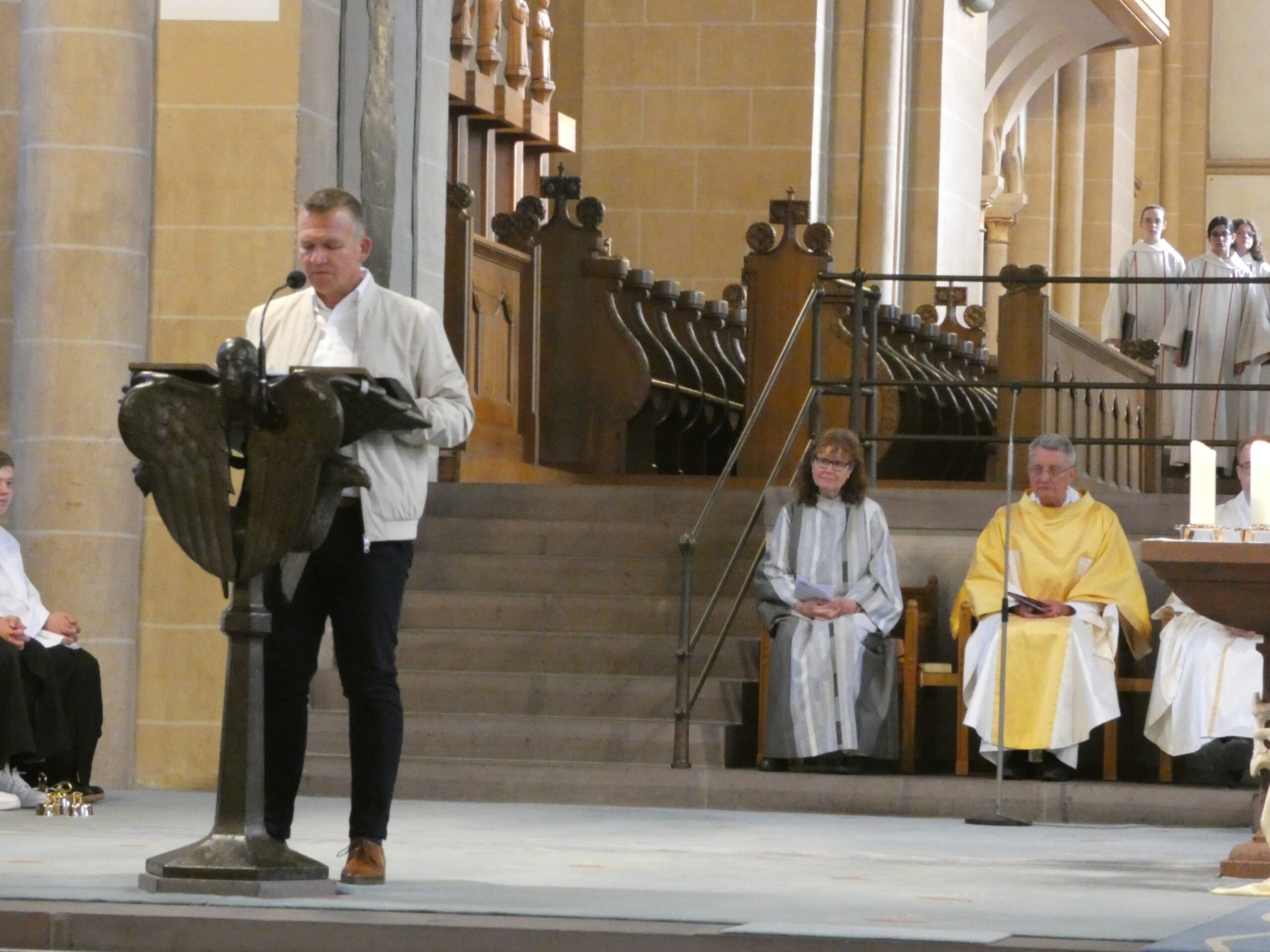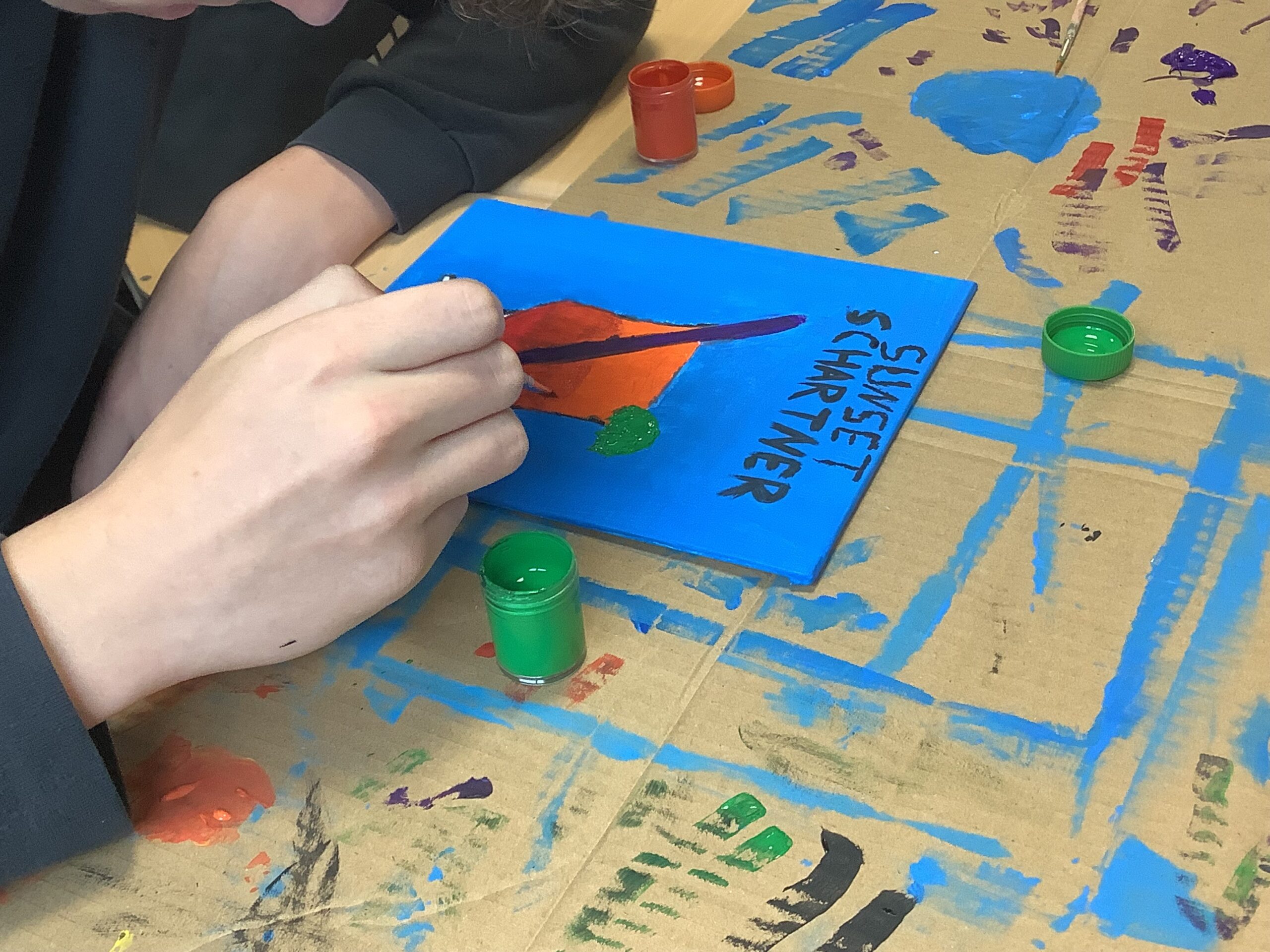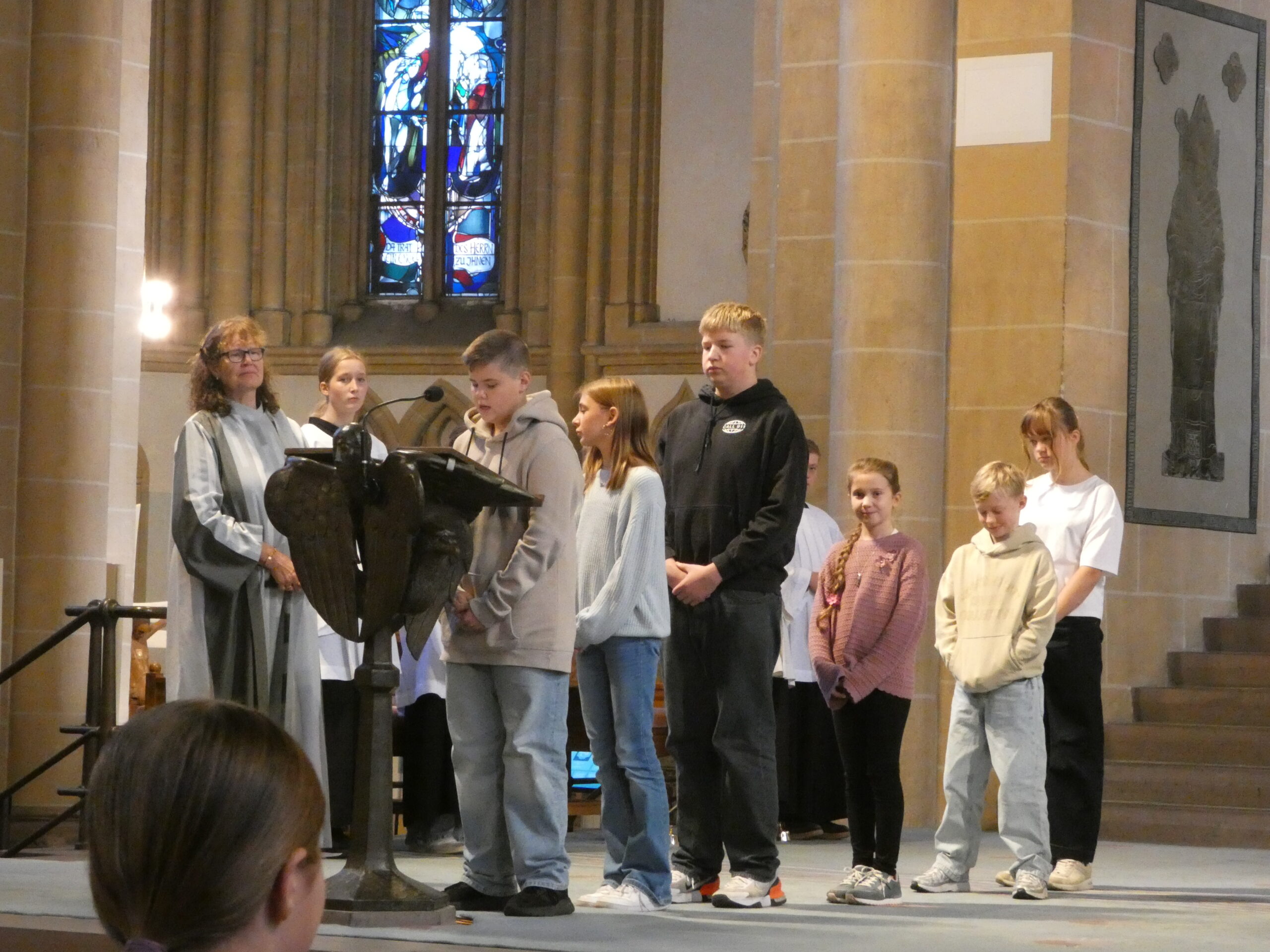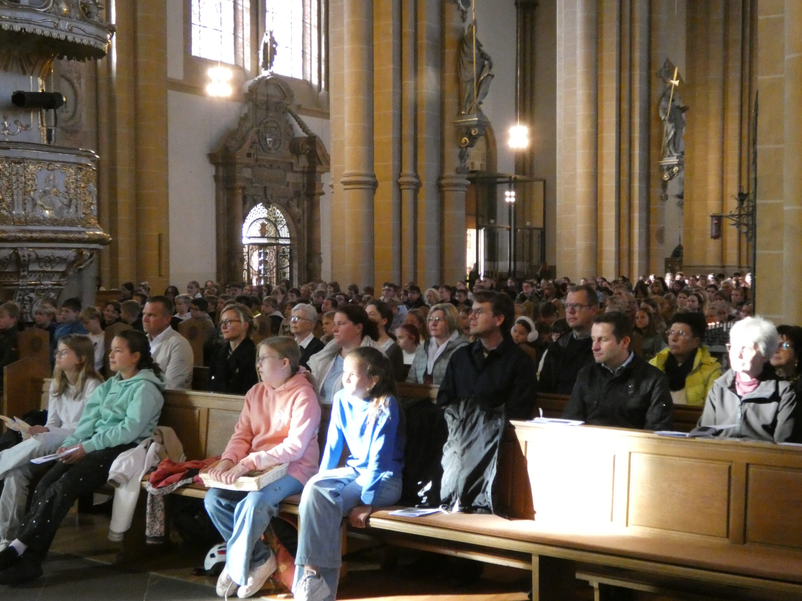 Am nächsten Morgen begann unser Schulfest mit einem feierlichen Festgottesdienst im Hohen Dom zu Paderborn, an dessen Abschluss alle getreu dem Motto des Jubiläums „Schule mit Herz seit 75 Jahren“ ein während der Projekttage gebasteltes kleines Herz erhielten. Anschließend präsentierten die Gruppen ihre beeindruckenden Arbeitsergebnisse auf dem Schulgelände, wozu die Eltern herzlich eingeladen waren und auch zahlreich erschienen. Für das leibliche Wohl sorgten ein buntes Kuchenbuffet, das von den Eltern bestückt wurde, sowie die Cocktail-Bar mit Lounge, die von zwei Projekten vorbereitet und organisiert wurde. Alle genossen es, die Früchte ihrer Arbeit gegenseitig zu bewundern und eine schöne Zeit zusammen zu verbringen. An diesem Tag begrüßte die Schulgemeinschaft auch offiziell unsere neue stellvertretende Schulleiterin Simone Flottmeier, indem die Schülervertretung ihr ein Willkommensgeschenk überreichte und sie im Namen aller anwesenden Schülerinnen und Schüler herzlich willkommen hieß und ihr alles Gute für ihre Zeit an der Realschule St. Michael wünschte. Aufgeräumt wurde schließlich am Donnerstag in der ersten Stunde und dann wartete noch eine besondere Überraschung der Schulleitung auf alle Schüler/innen: Ein Eiswagen erwartete die Schulgemeinschaft der Realschule auf dem Schulhof und beglückte jeden mit einem leckeren kostenlosen Softeis.